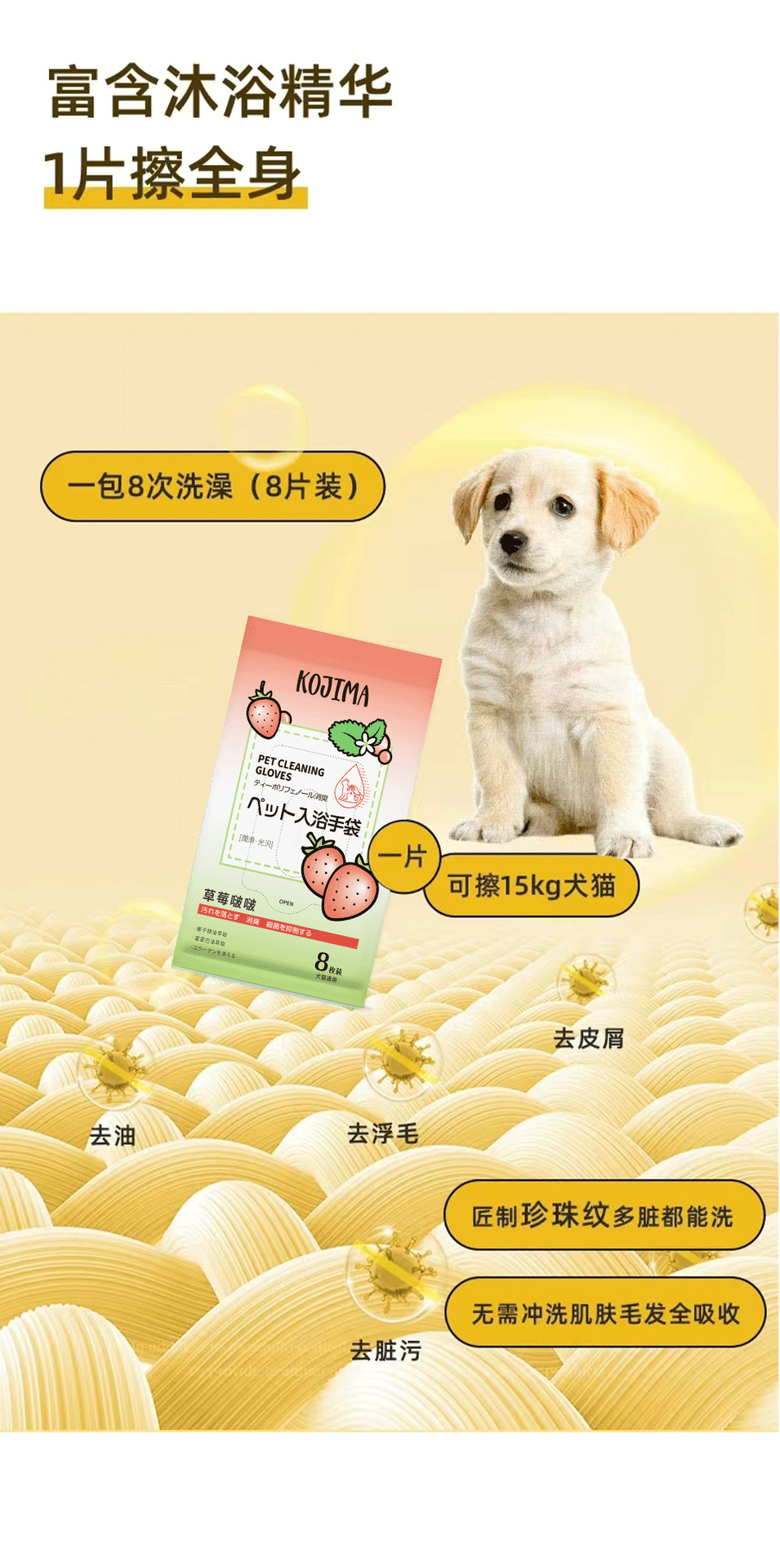 • 애완동물 장갑 물티슈(딸기 보보보) 8개(박스 전체 36개)