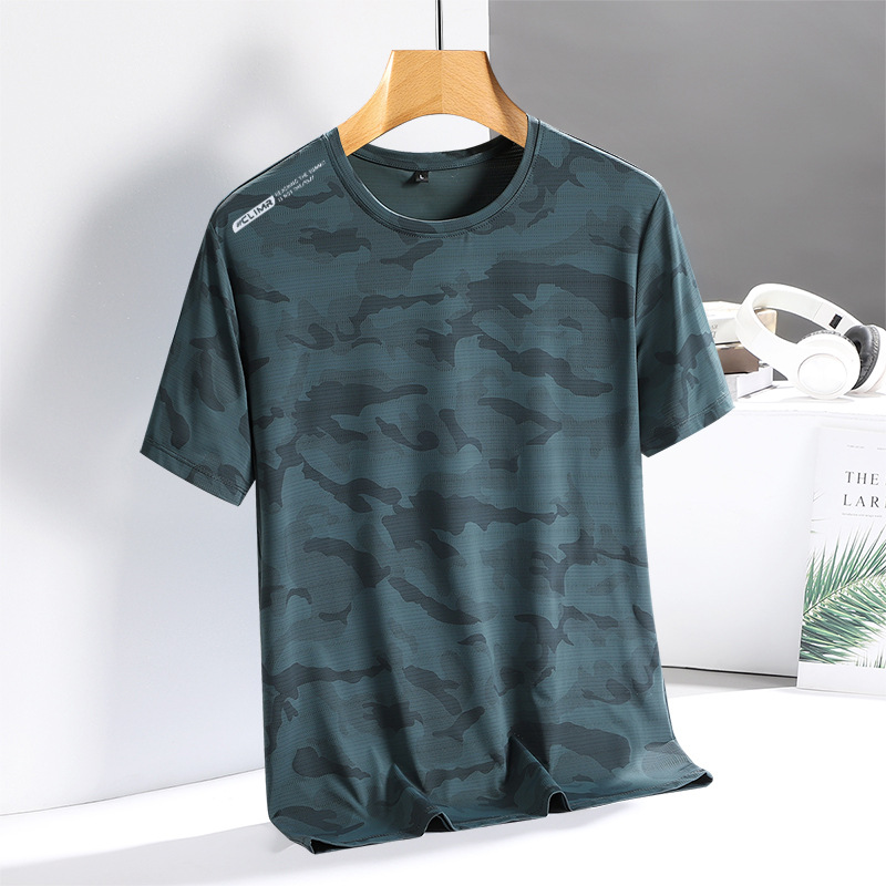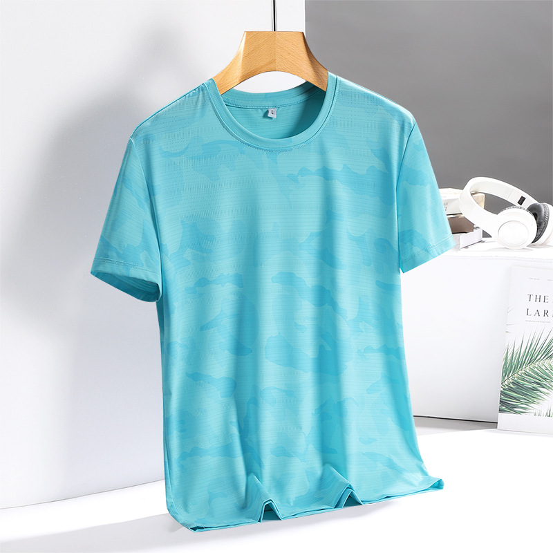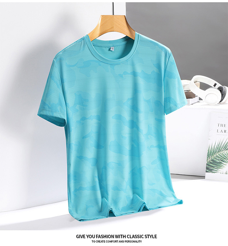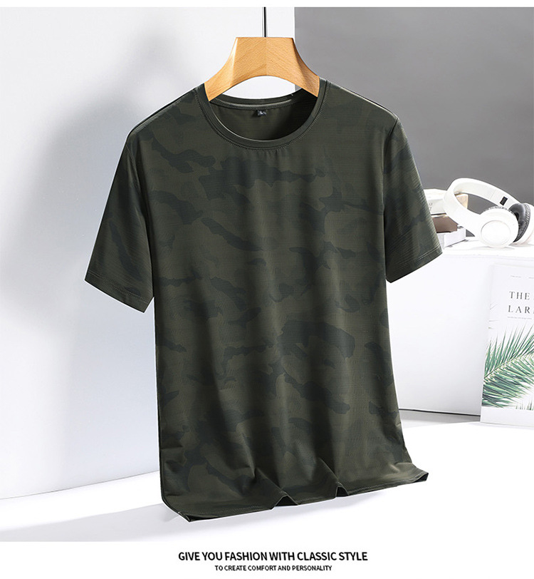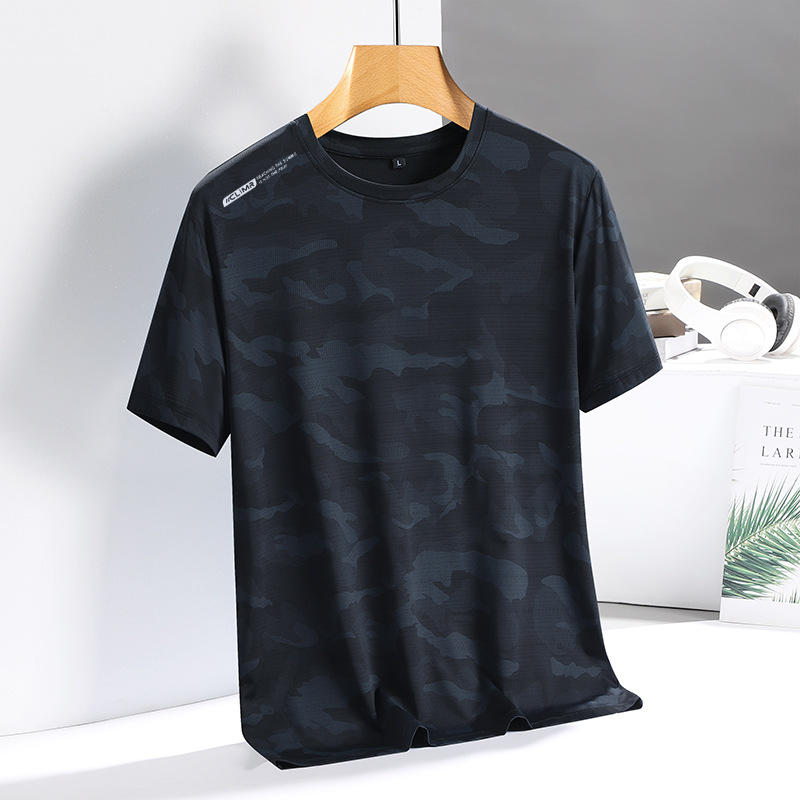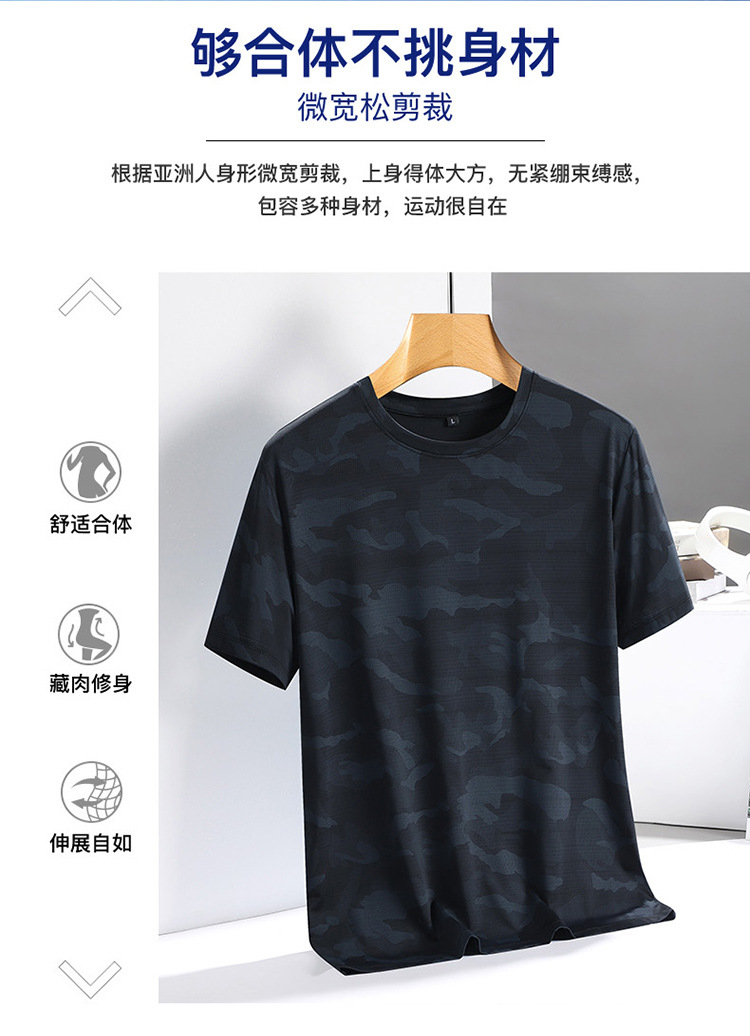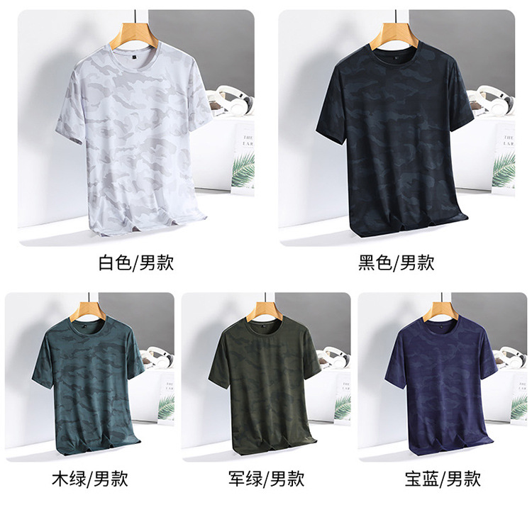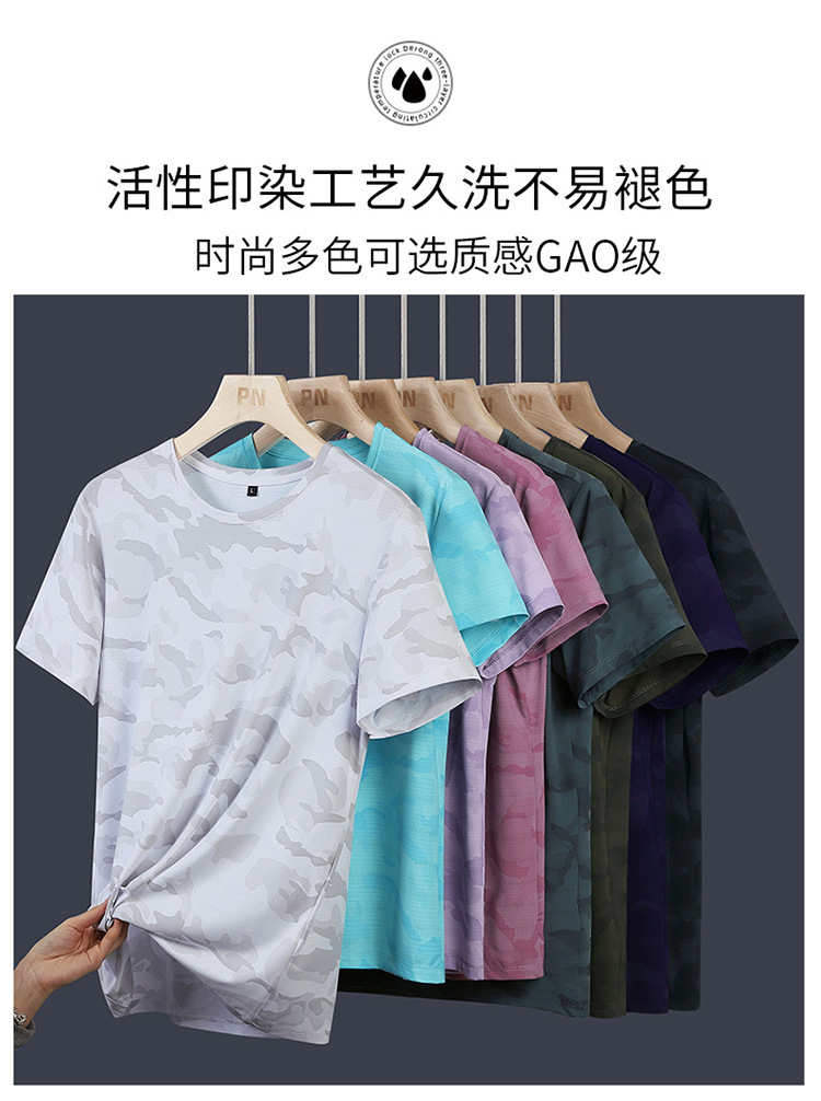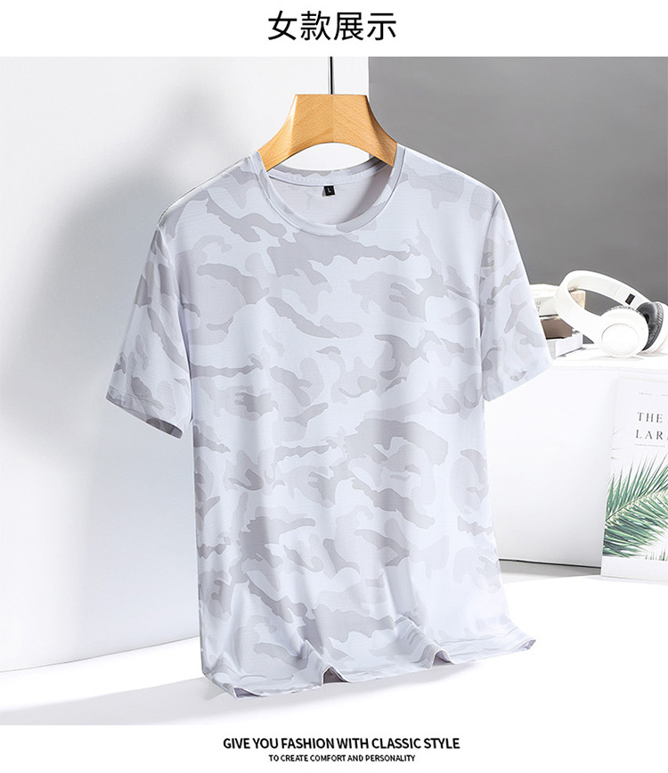 아이스 실크 반팔 티셔츠 남성용 여름 새로운 플러스 사이즈 위장 남성과 여성의 라운드 넥 속건 얇은 캐주얼 반팔 티셔츠스토어 가기