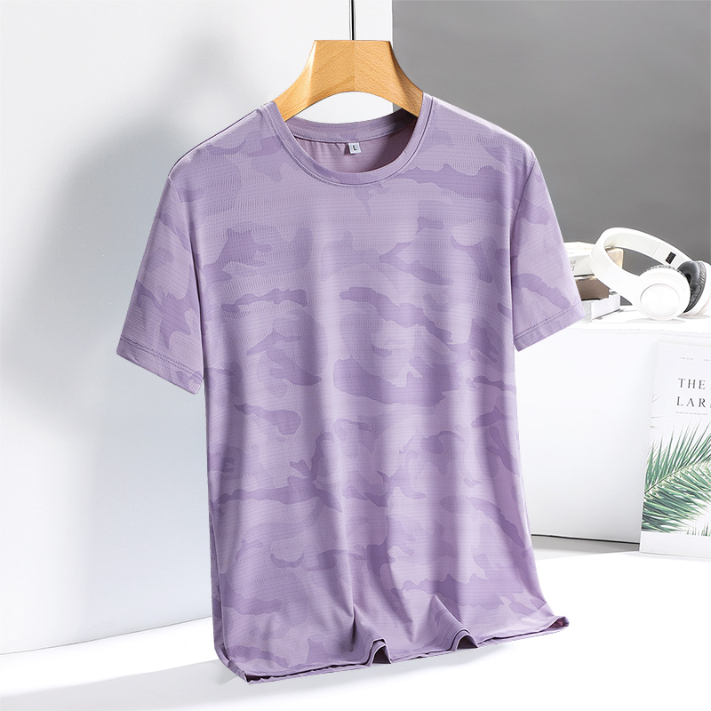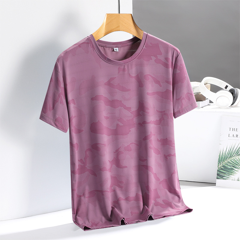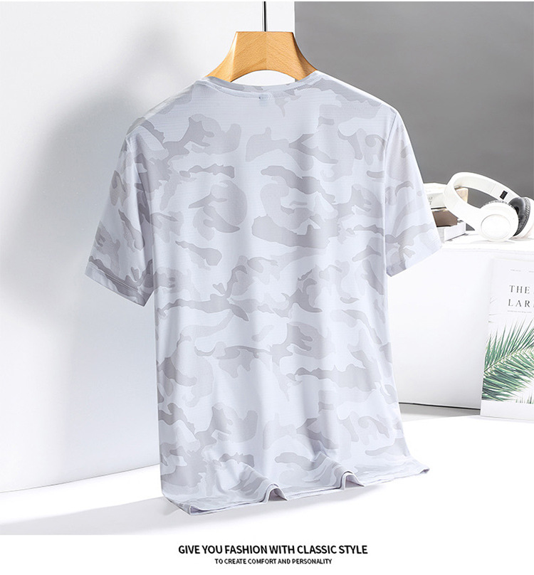 아이스 실크 반팔 티셔츠 남성용 여름 새로운 플러스 사이즈 위장 남성과 여성의 라운드 넥 속건 얇은 캐주얼 반팔 티셔츠