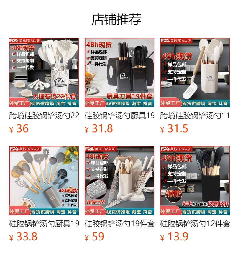 실리콘 주걱 수프 스푼 19 조각 세트 비 스틱 실리콘 주걱 가정용 실리콘 주방 용품 커터 세트 도매