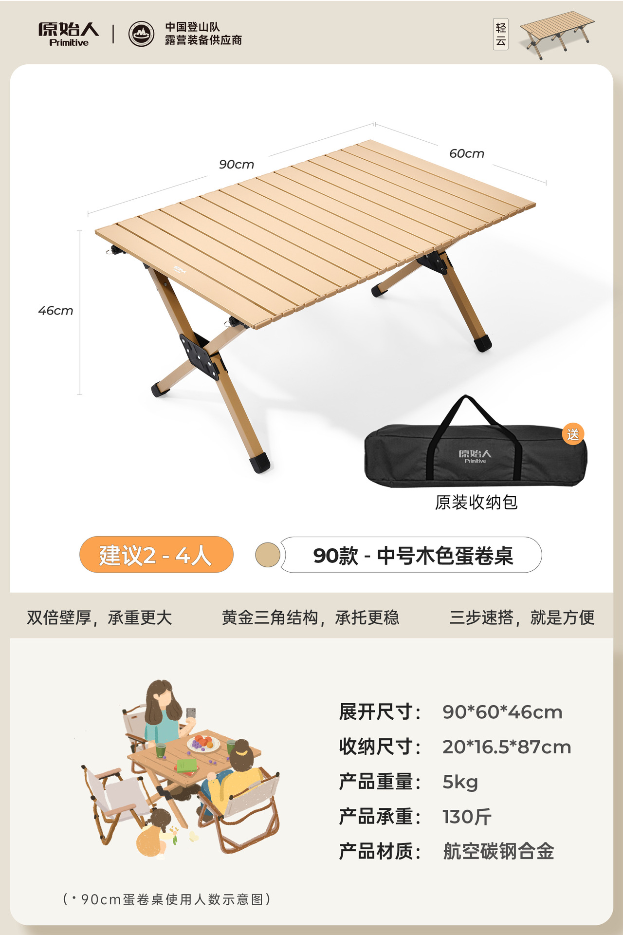 원시적 인 남자 야외 접이식 테이블 계란 롤 테이블 피크닉 테이블 캠핑 피크닉 휴대용 테이블