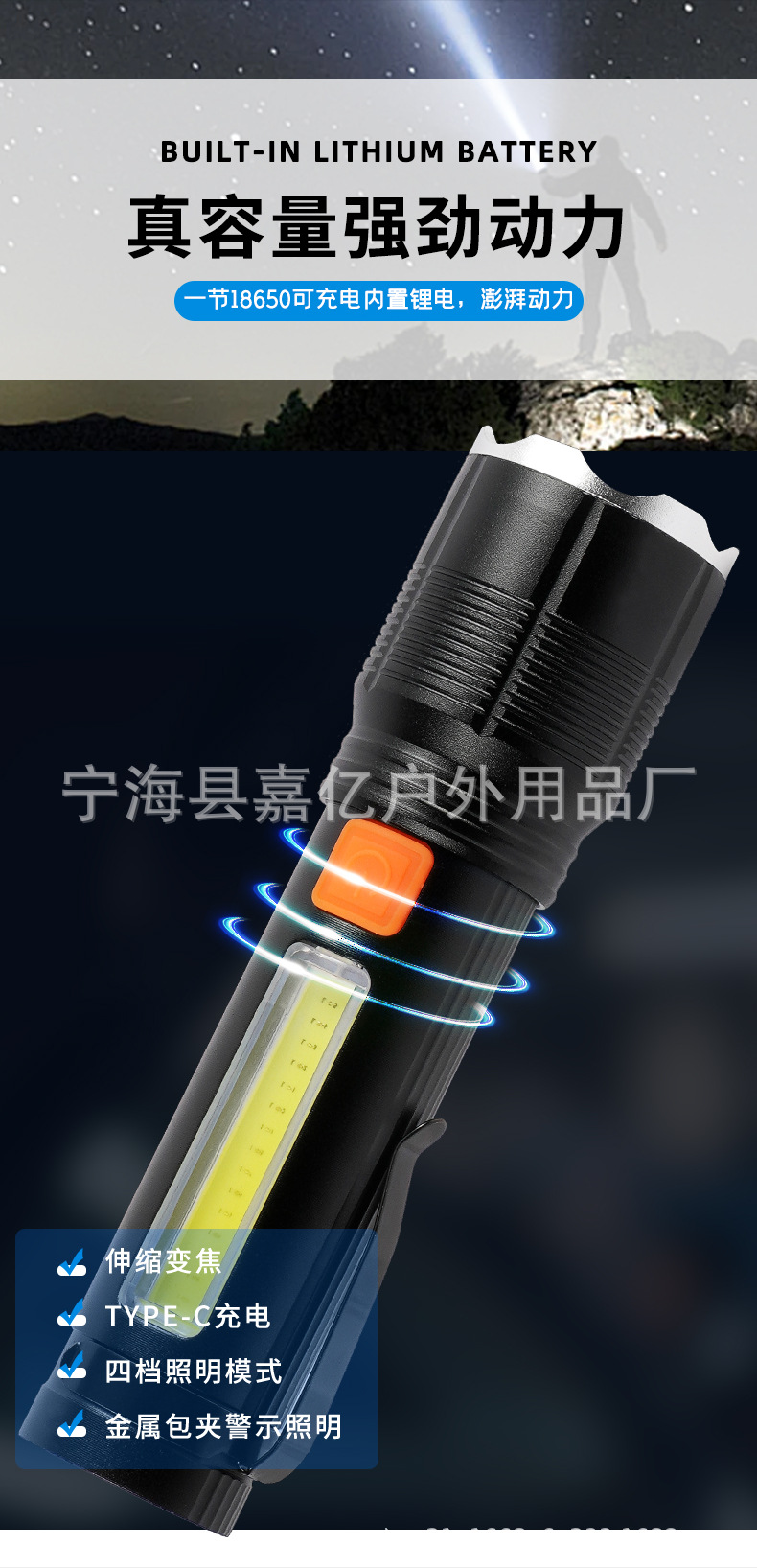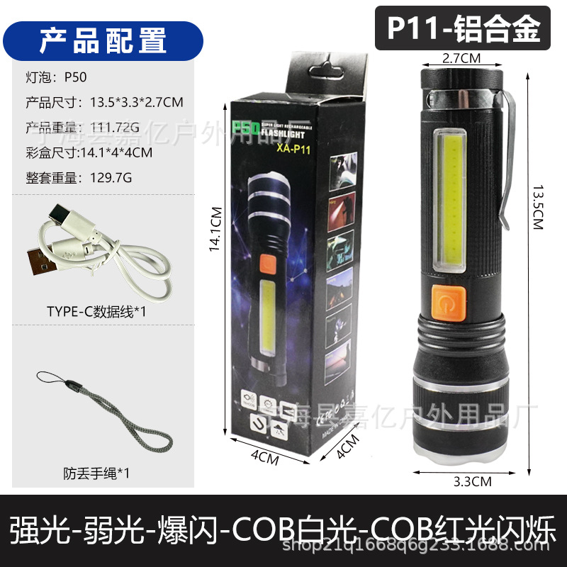 국경 간 강한 빛 손전등 led 야외 조명 P50 원격 텔레스코픽 COB 붉은 빛 경고 USB 충전 작업 빛스토어 가기