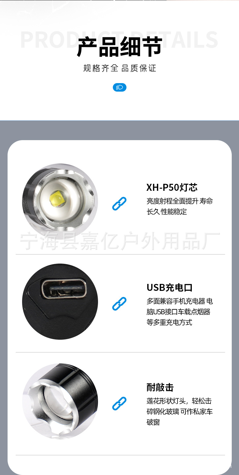 국경 간 강한 빛 손전등 led 야외 조명 P50 원격 텔레스코픽 COB 붉은 빛 경고 USB 충전 작업 빛