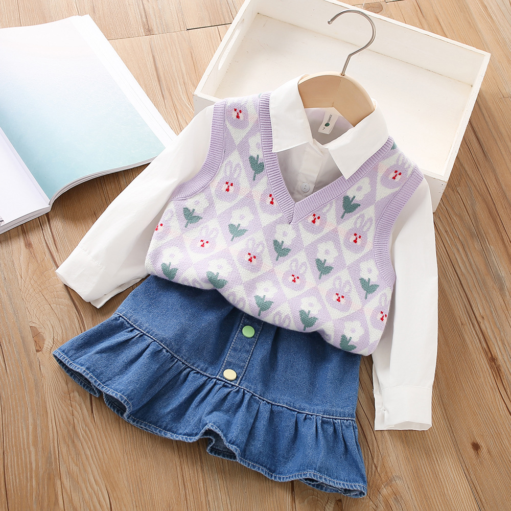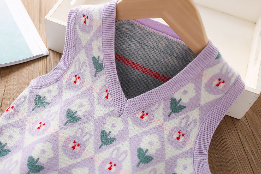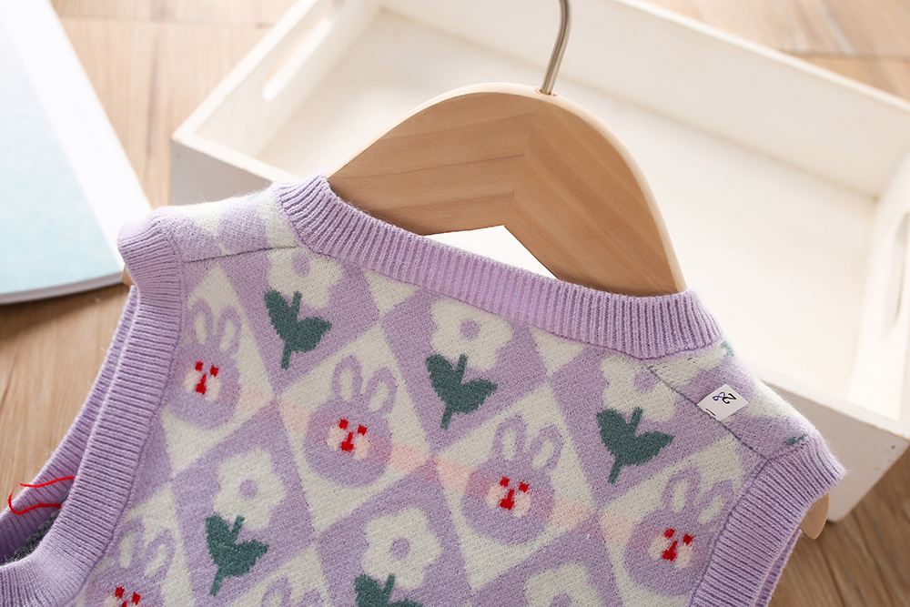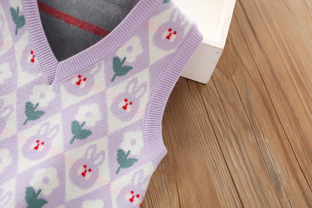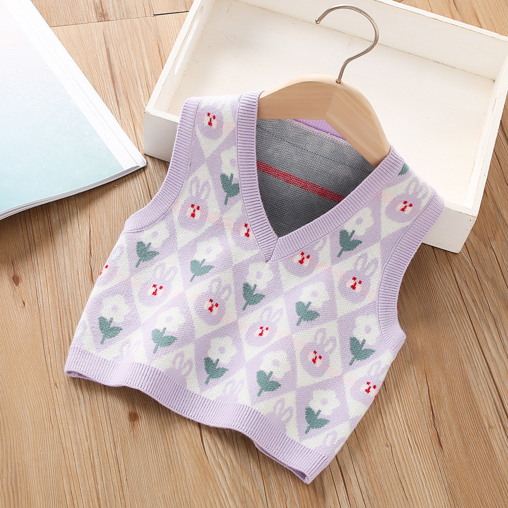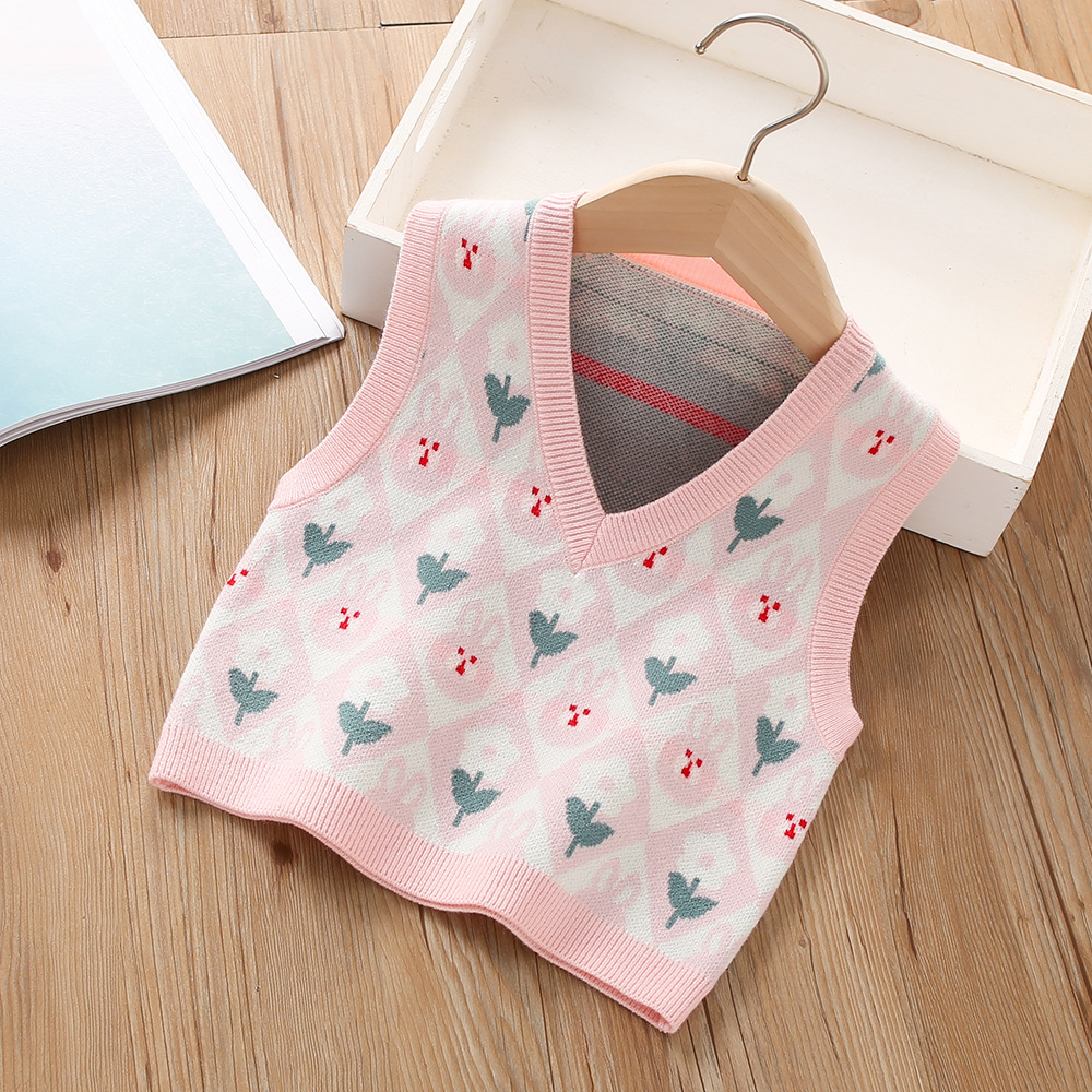 여아 스웨터 조끼 2023 봄과 가을 새로운 서양 스타일 귀여운 어린이 V-넥 니트 한국 스타일 유행 모든 매치 조끼스토어 가기