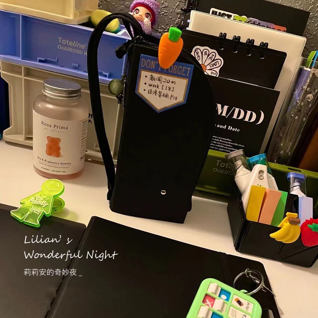 小贴士:此款笔袋为纯黑色,没有任何贴纸和标签。
