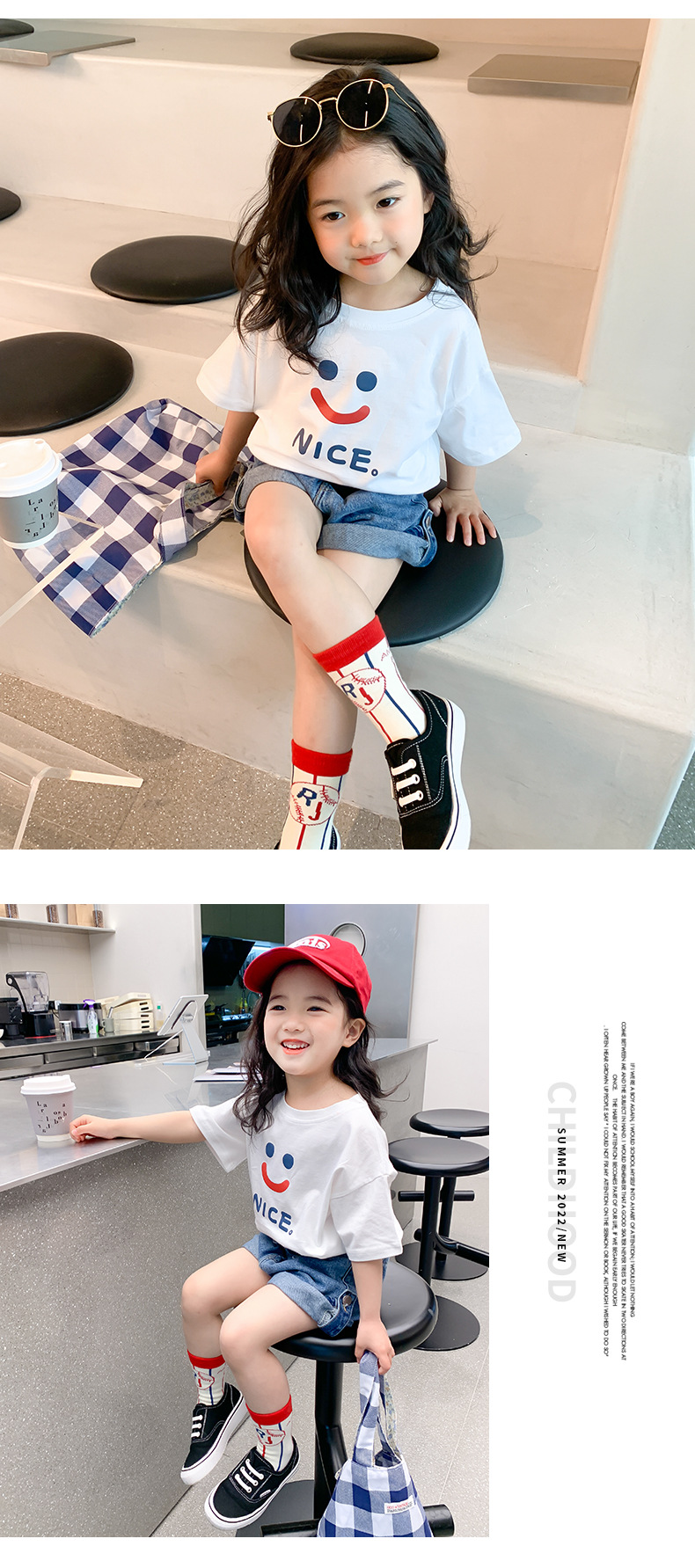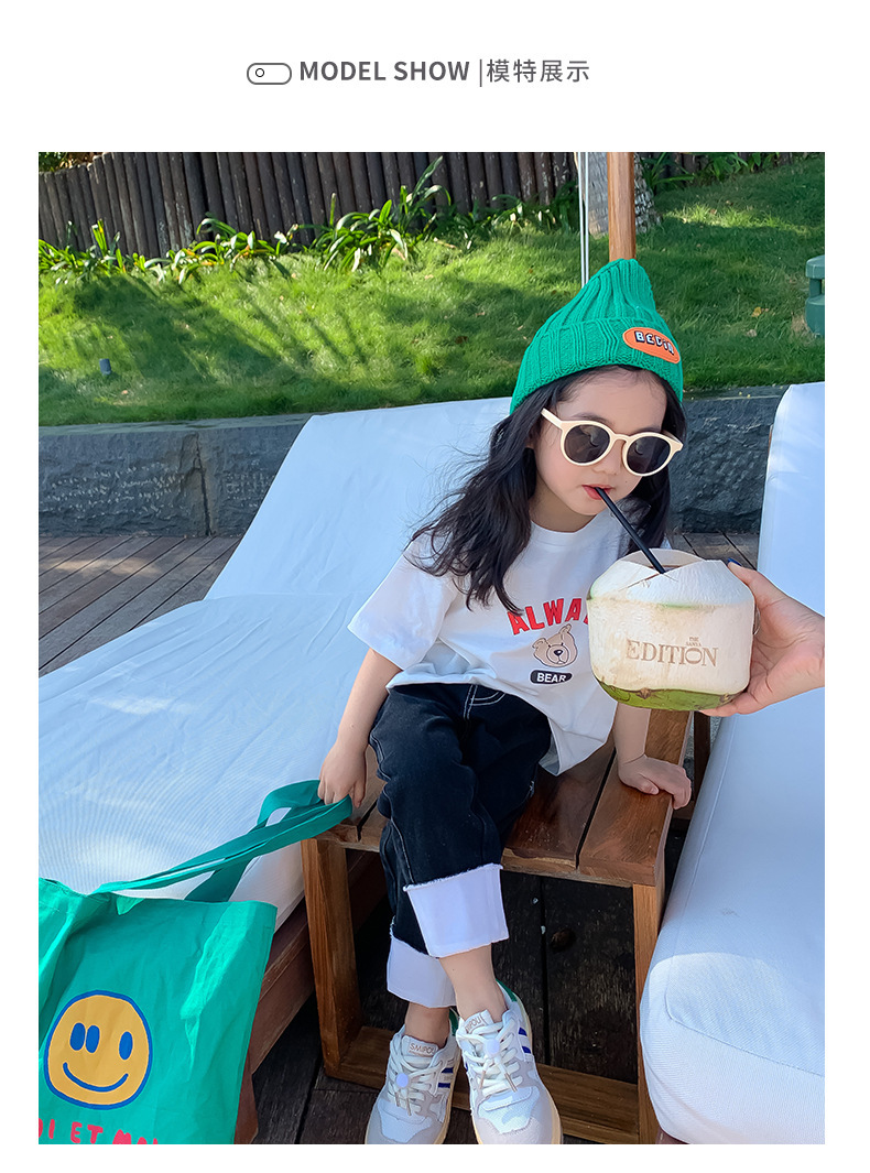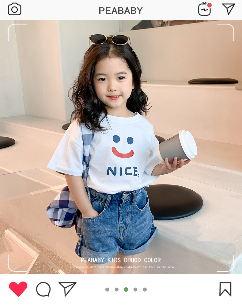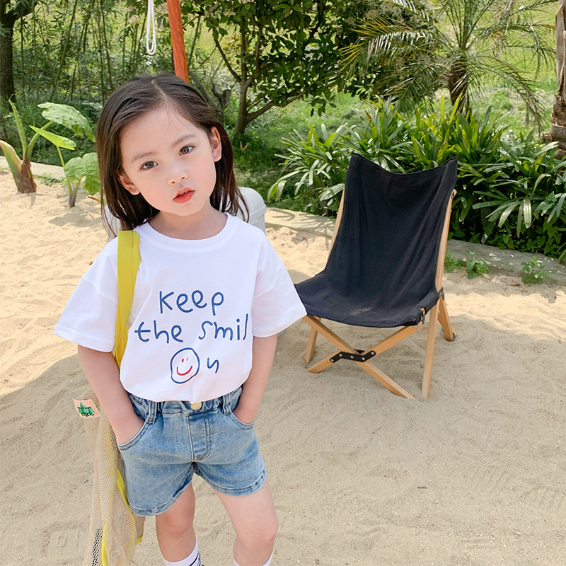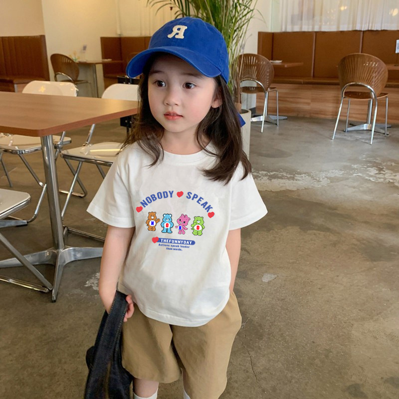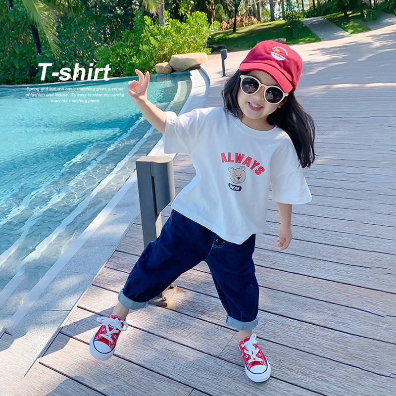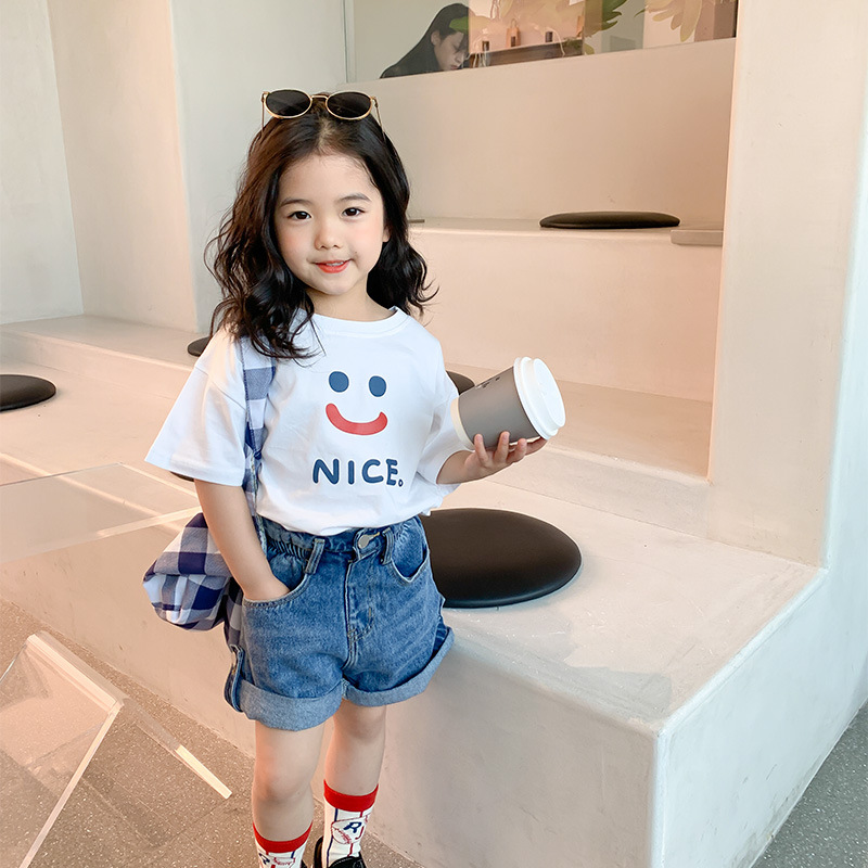 여자 반팔 티셔츠 여름 순수 코튼 얇은 탑 2025 새로운 스타일 중소 어린이 흰색 아기 소녀 티셔츠 t스토어 가기