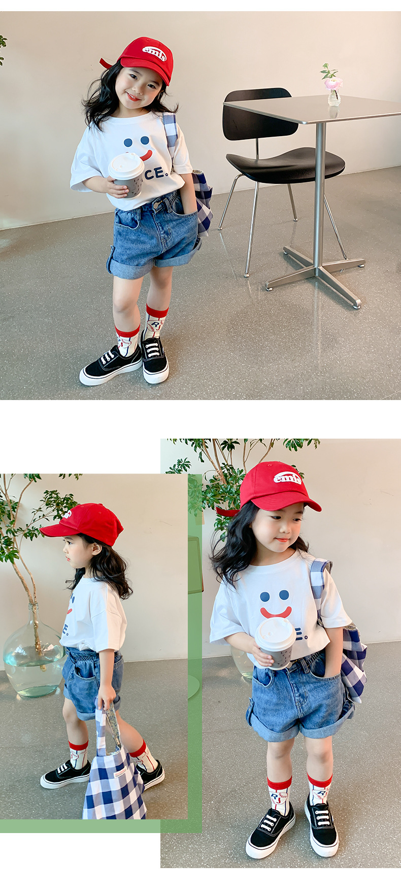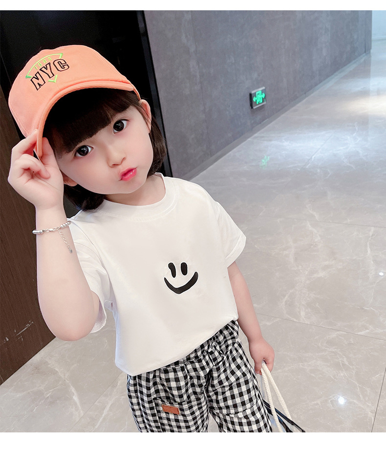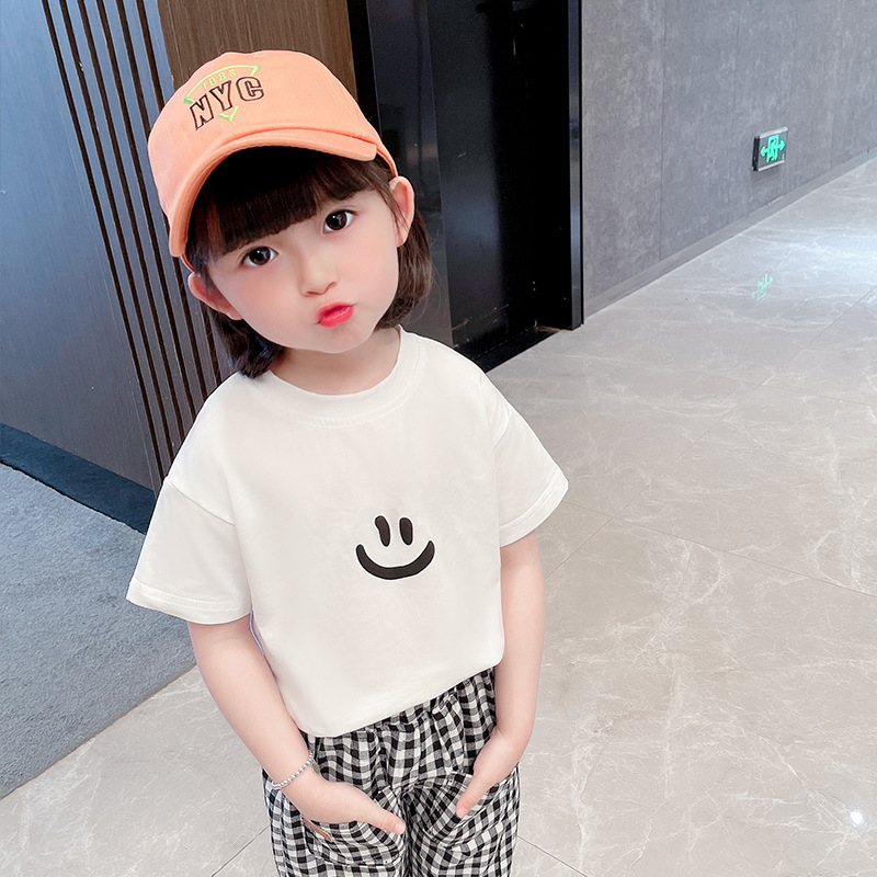 여자 반팔 티셔츠 여름 순수 코튼 얇은 탑 2025 새로운 스타일 중소 어린이 흰색 아기 소녀 티셔츠 t