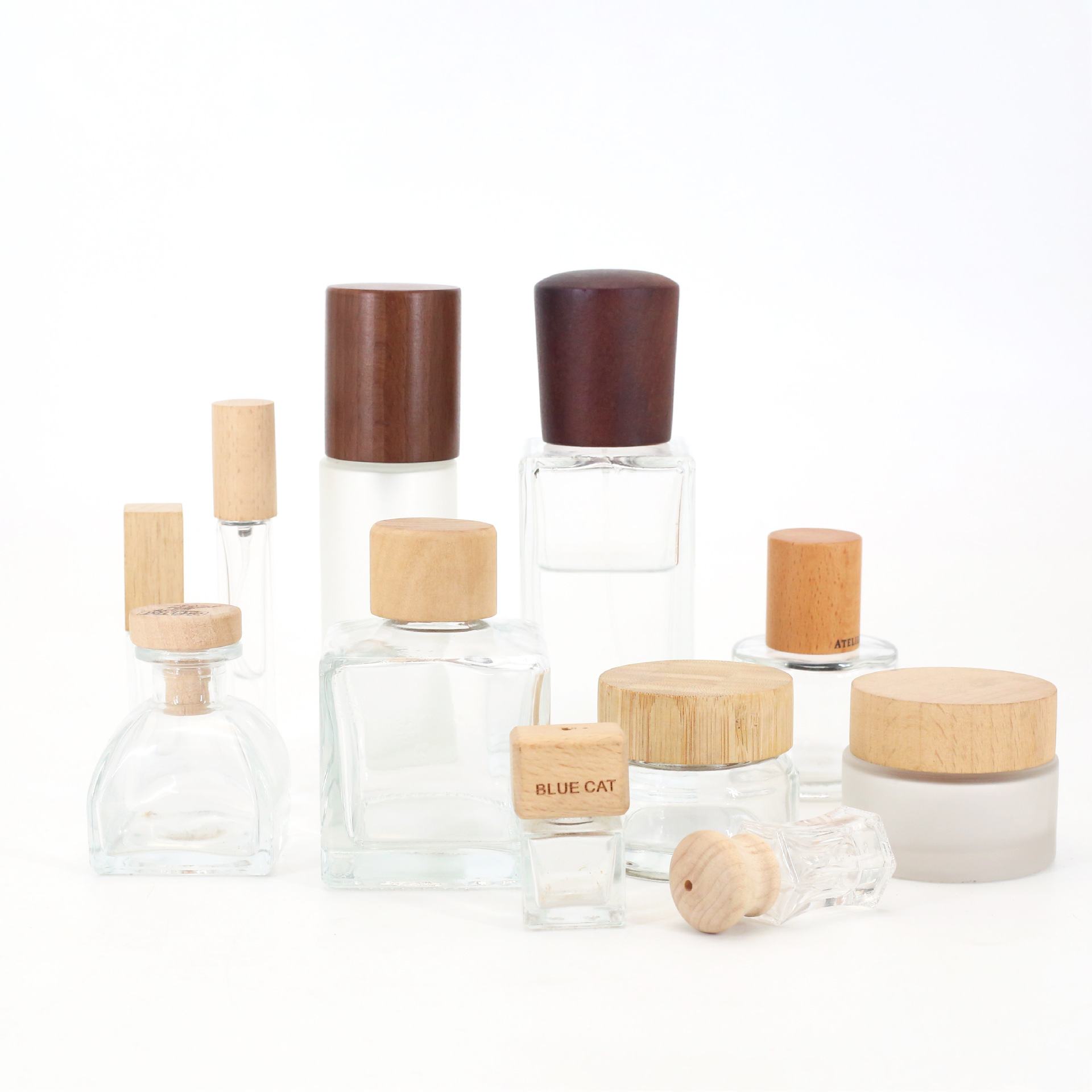 나무 모자 향수 병 나무 모자 펌프 병 모자 화장품 유리 병 내부 치아 나무 모자 스프레이 병 공 병 대나무 모자
