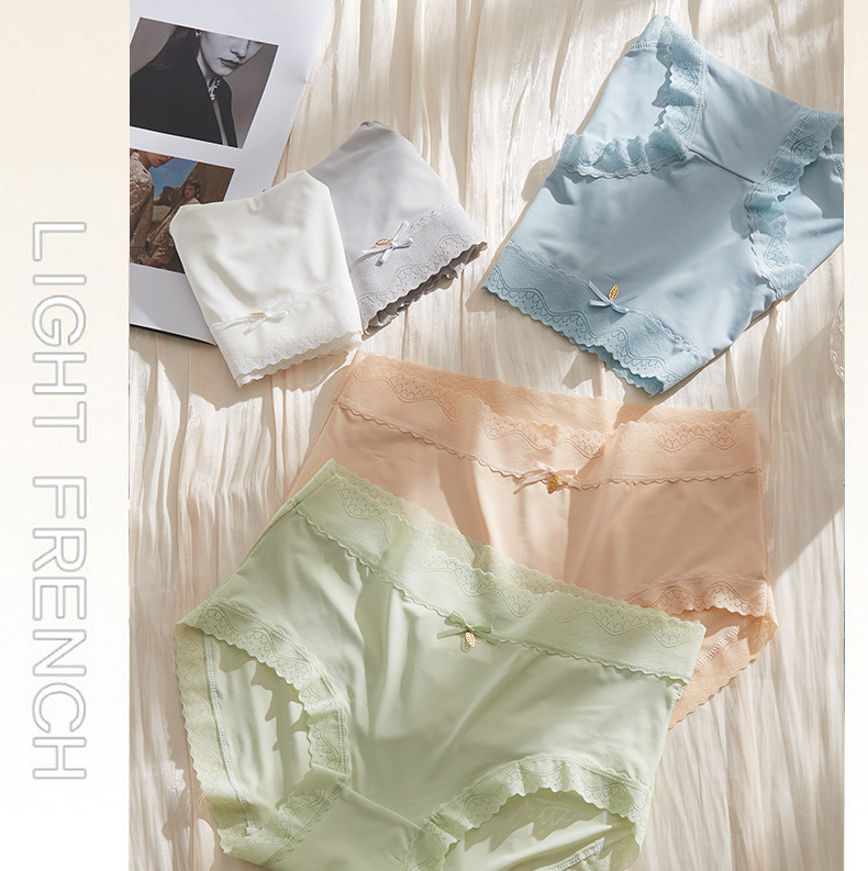 새로운 아이스 실크 여성 속옷 무마킹 미드 웨이스트 퓨어 코튼 통기성 팬티 초박형 실키 통기성 여아 속옷스토어 가기