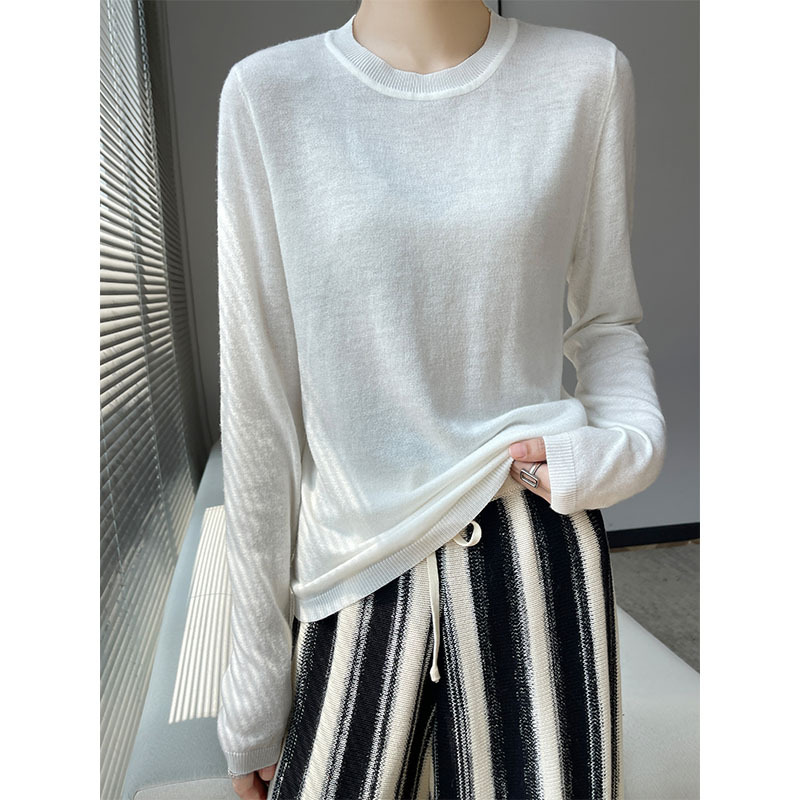 Worsted 크루넥 모직 스웨터 여성용 2023 얇은 느슨한 티셔츠 이른 봄 긴 소매 니트 베이스 셔츠 탑 여름