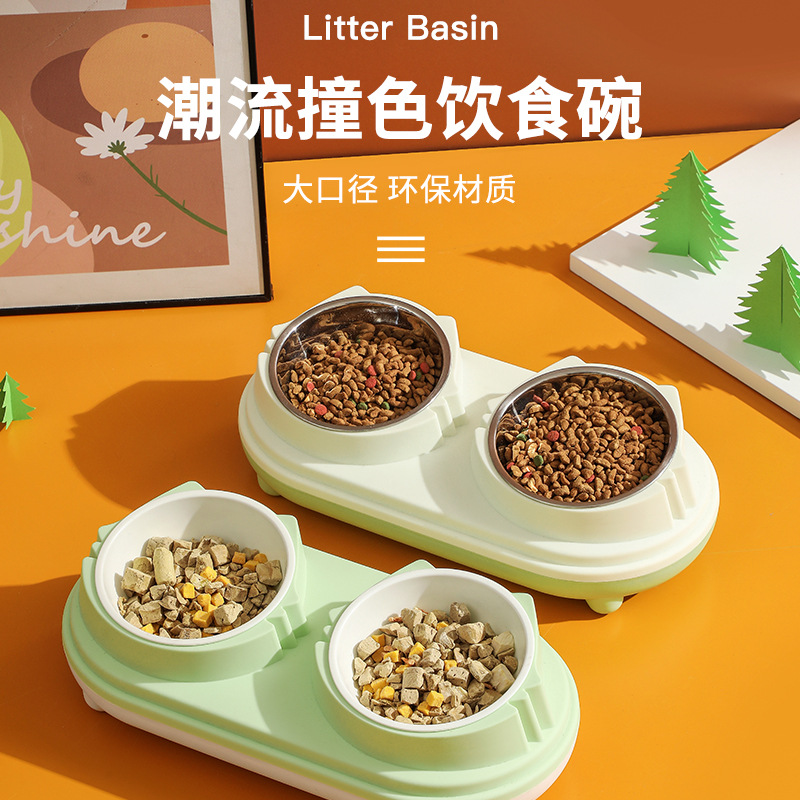 애완 동물 식탁 만화 애완 동물 더블 그릇 자동 마시는 개 그릇 개 그릇 먹이 그릇 테디 밥 고양이 용품스토어 가기