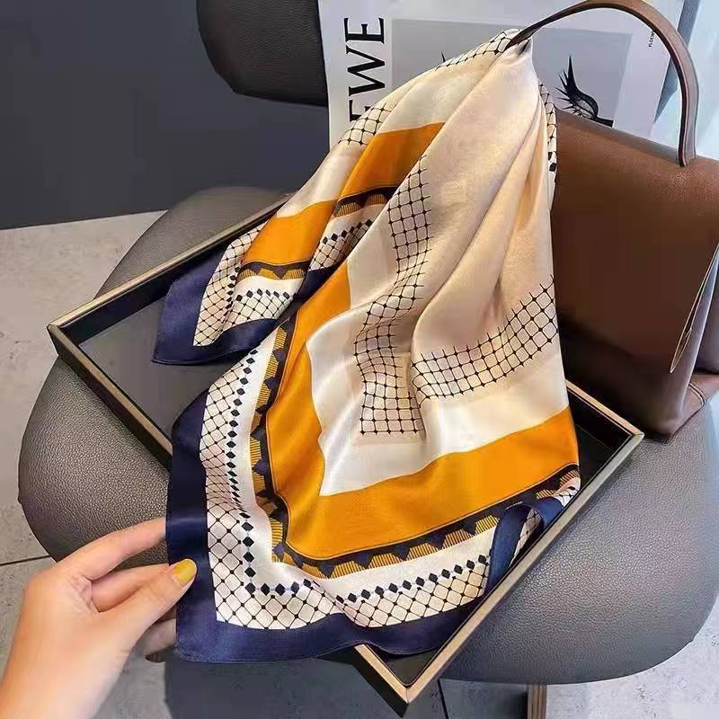 새로운 패션 Lijing 섹션 70 스퀘어 스카프 봄과 가을 얇은 우아한 모든 일치 실크 스카프 장식 끈이없는 머리 스카프 다기능 직업스토어 가기