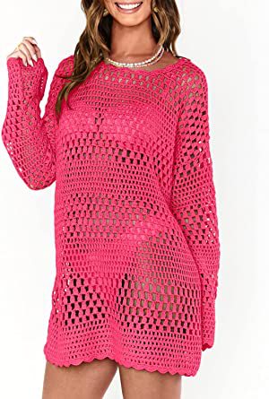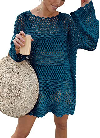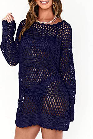 AliExpress 국경 여성 2023 년 여름 새로운 니트 라운드 넥 할로우 비치 블라우스 느슨한 캐주얼 니트 스웨터