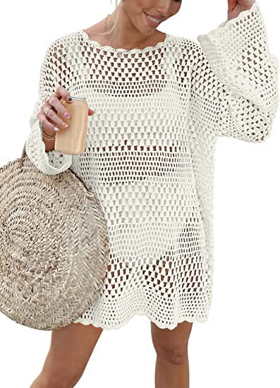 AliExpress 국경 여성 2023 년 여름 새로운 니트 라운드 넥 할로우 비치 블라우스 느슨한 캐주얼 니트 스웨터스토어 가기
