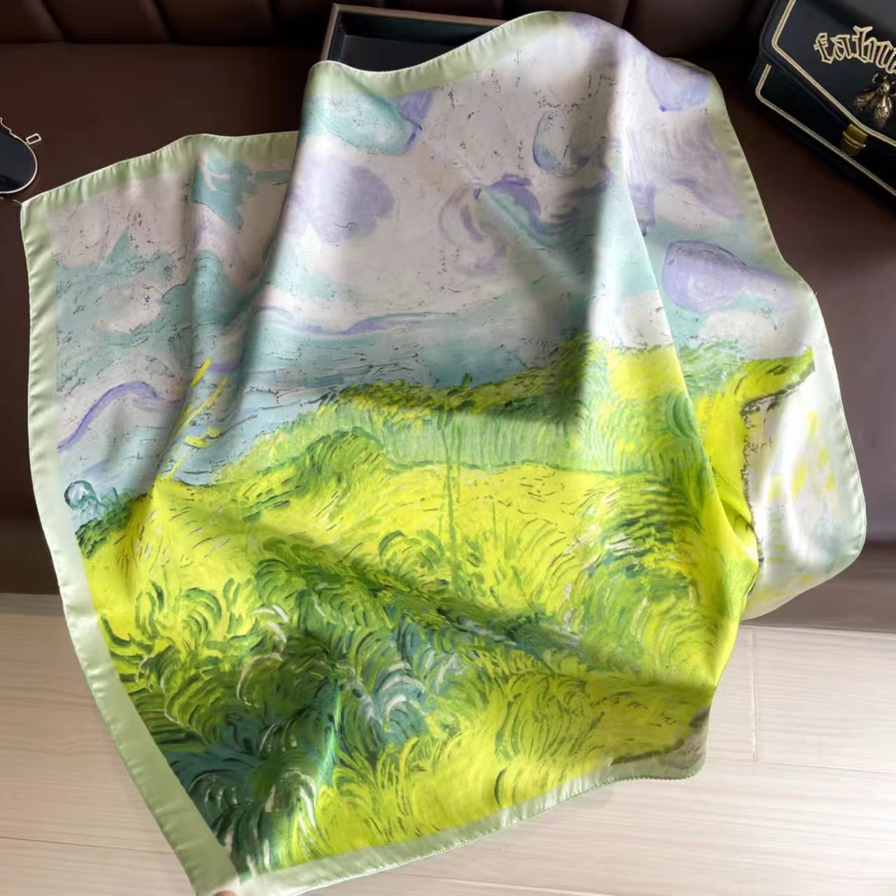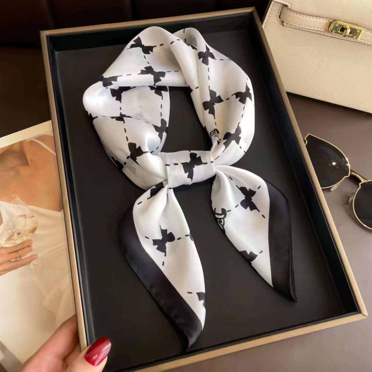 70×70 여성용 사각 스카프, 심플하고 패셔너블한 실크 스카프, 기하학 스카프, 모조 실크 여성용 머리띠, 포장 장식 실크스토어 가기