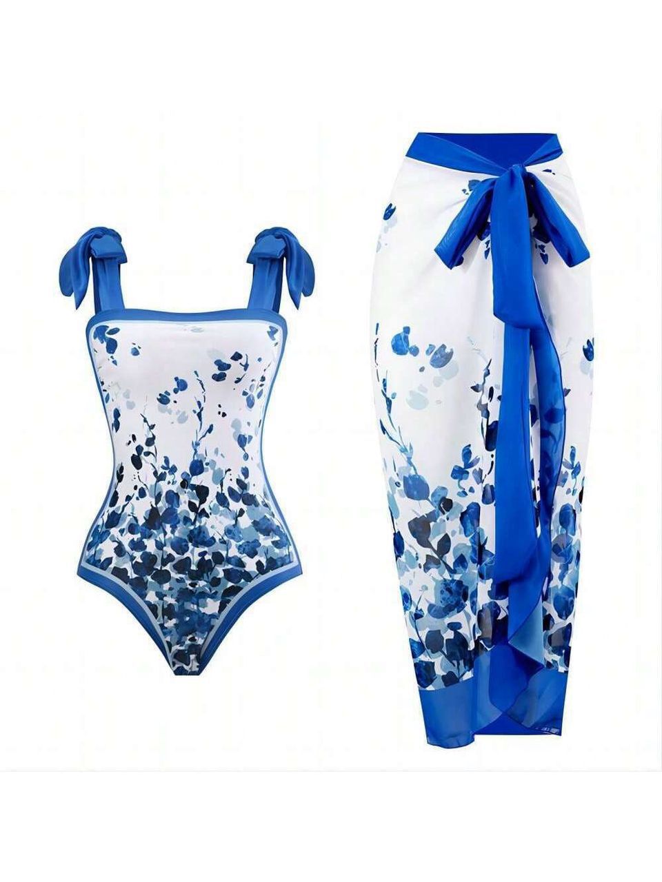 아마존 2023 유럽과 미국의 새로운 고정 에디션 인쇄 투피스 수영복 보수적 인 힙 스커트 재고 수영복스토어 가기