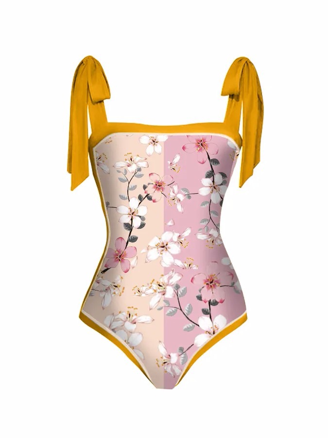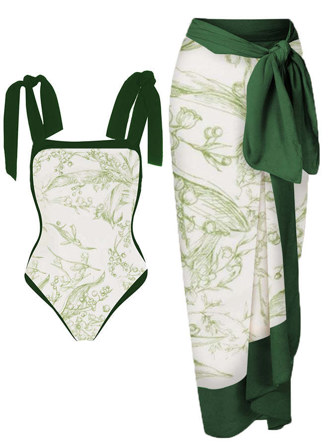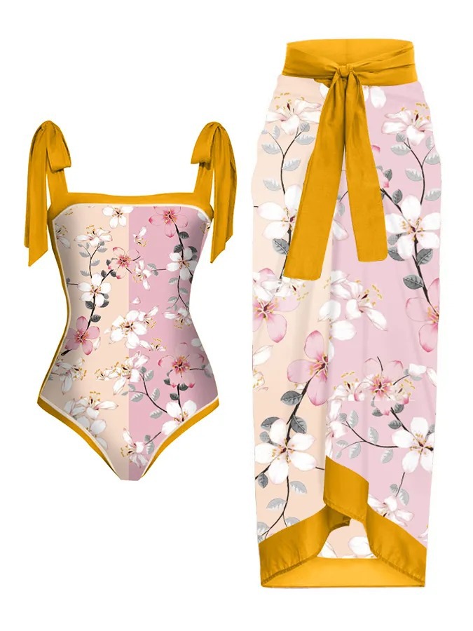 아마존 2023 유럽과 미국의 새로운 고정 에디션 인쇄 투피스 수영복 보수적 인 힙 스커트 재고 수영복