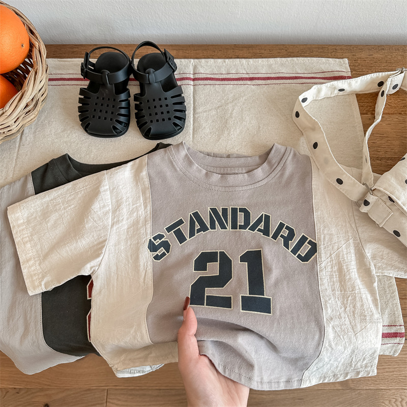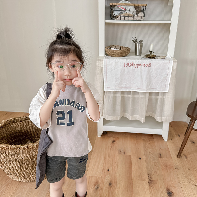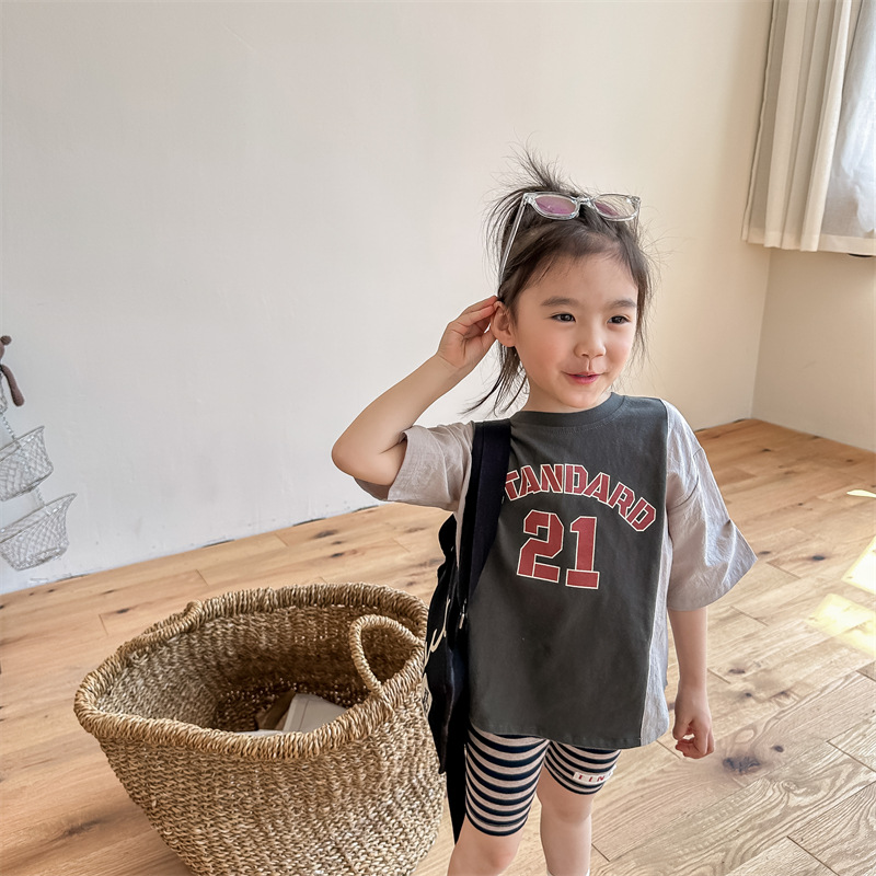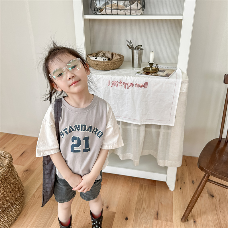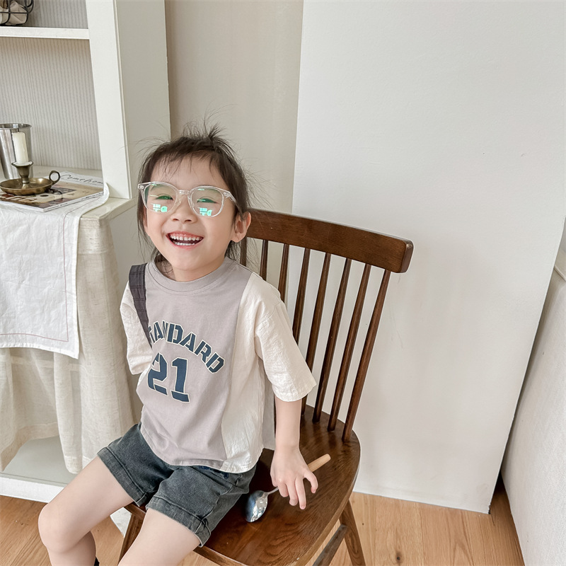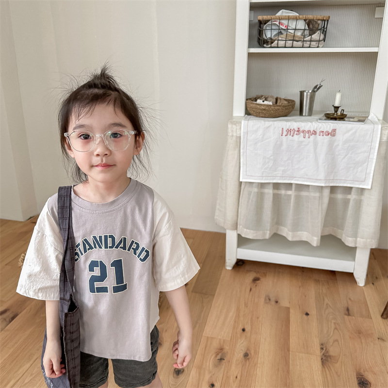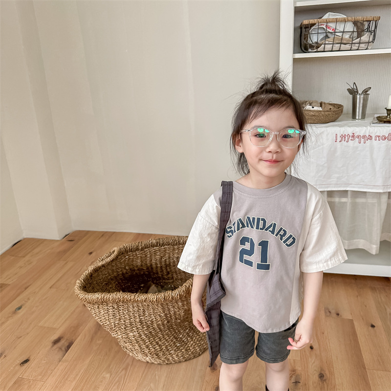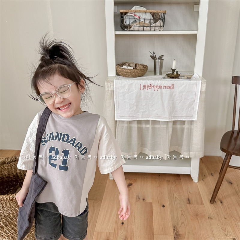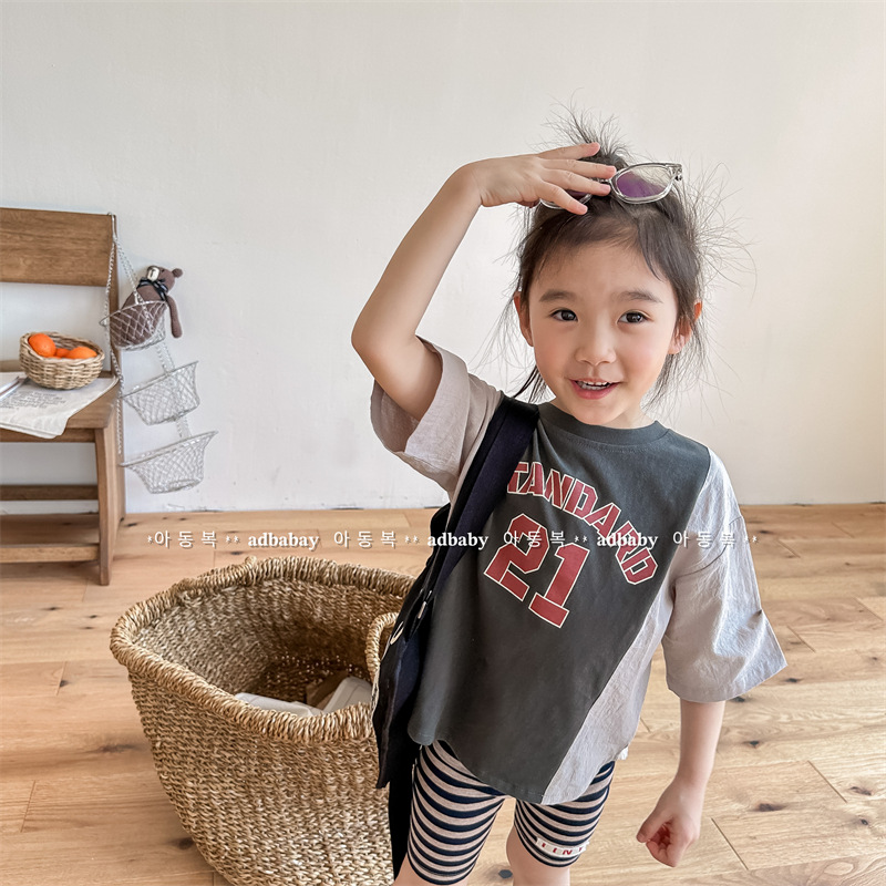 2026 아동복 여름 한국 스타일 반팔 활성 프린트 티셔츠 여아 남아 베이직 티셔츠 123217