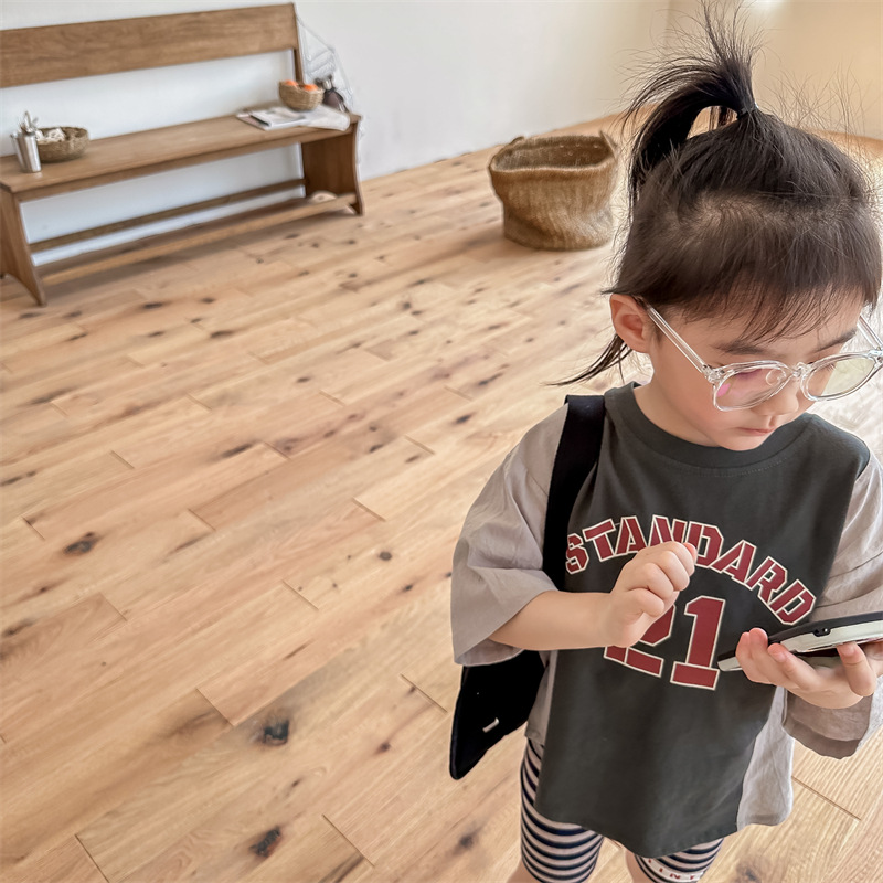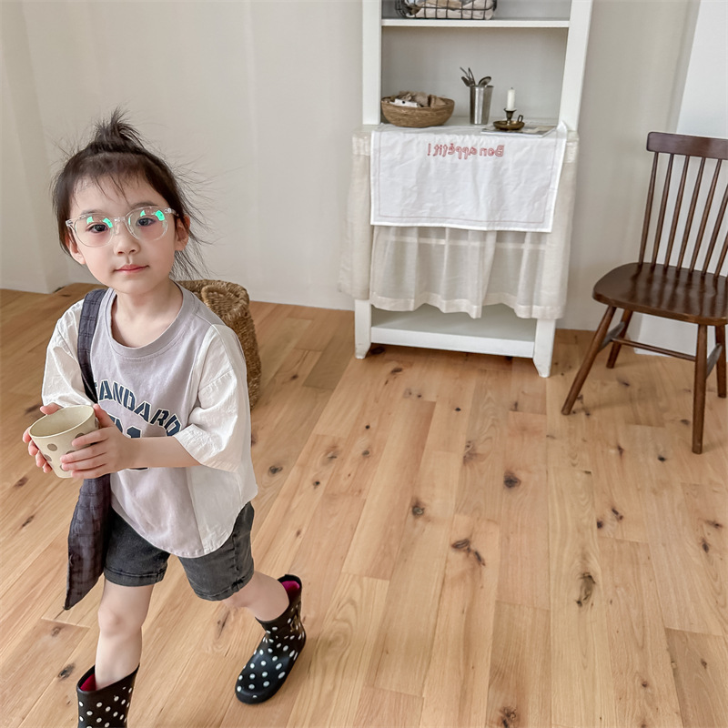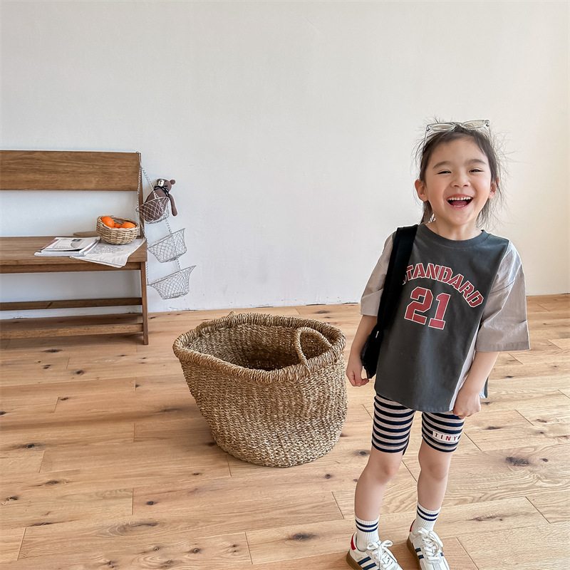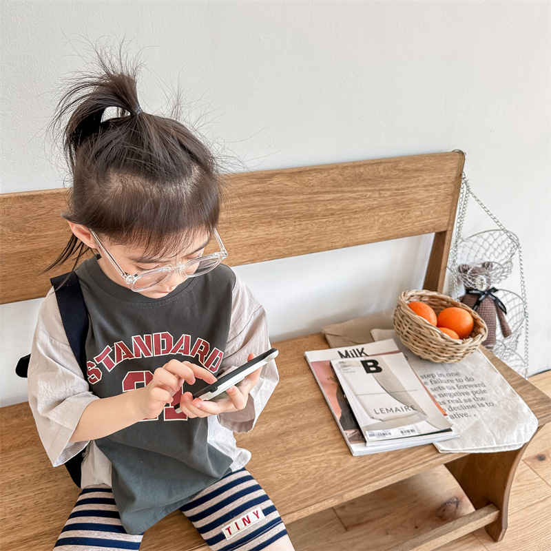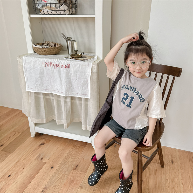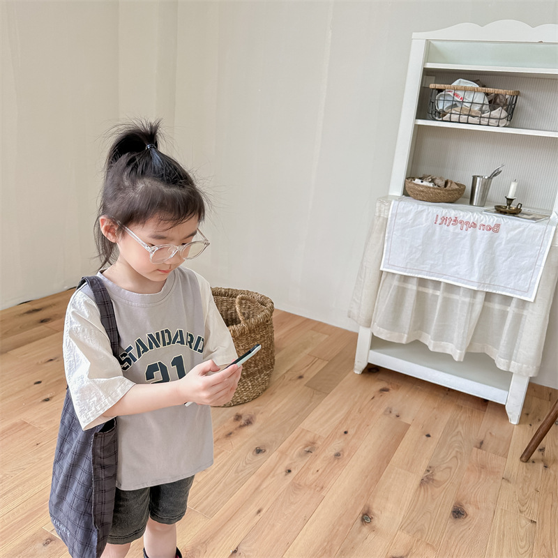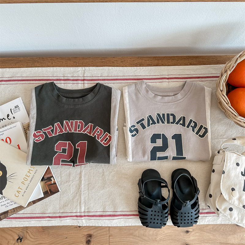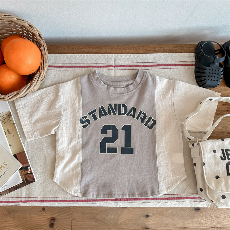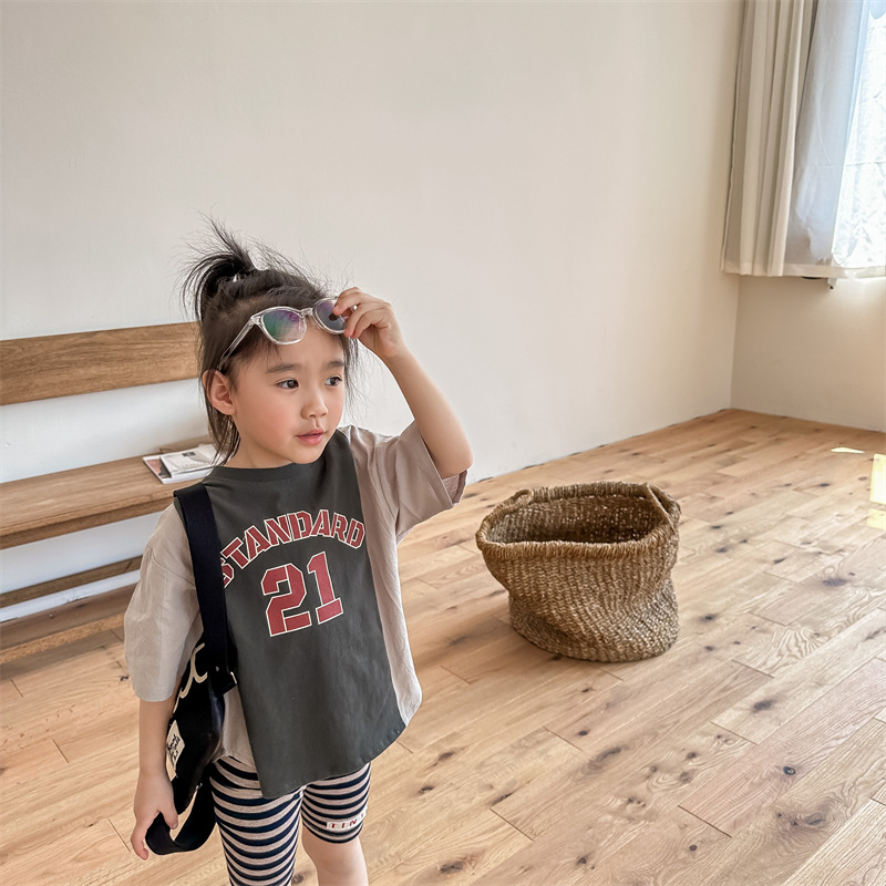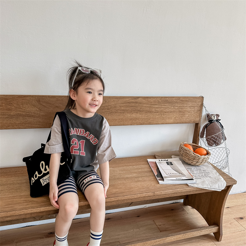 2026 아동복 여름 한국 스타일 반팔 활성 프린트 티셔츠 여아 남아 베이직 티셔츠 123217