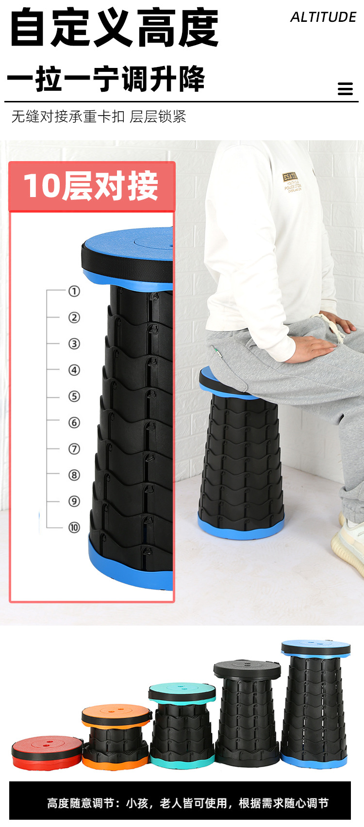 캠핑 접이식 의자 간단한 휴대용 조정 가능한 텔레스코픽 시트 높은 Mazar 야외 인기있는 의자 낚시 텔레스코픽 의자스토어 가기