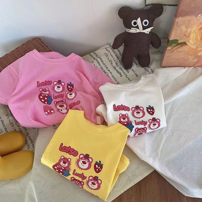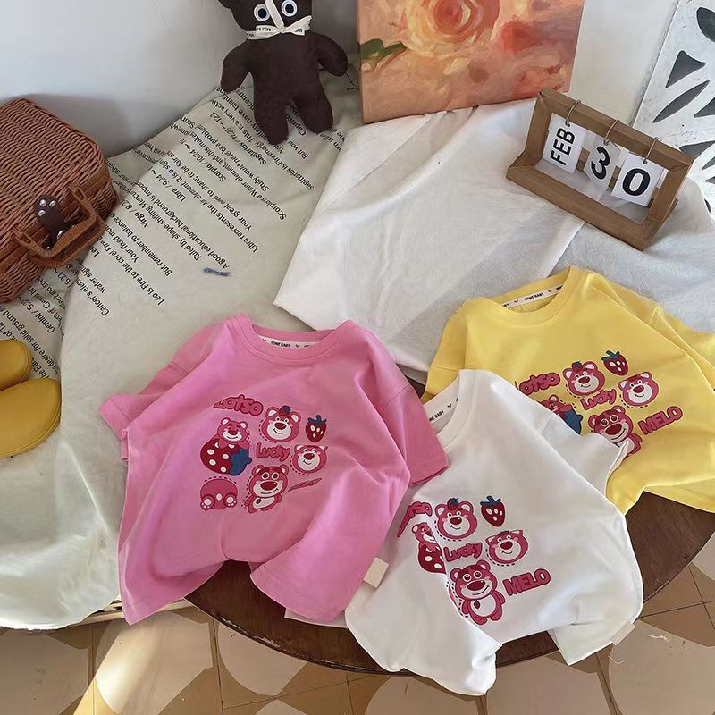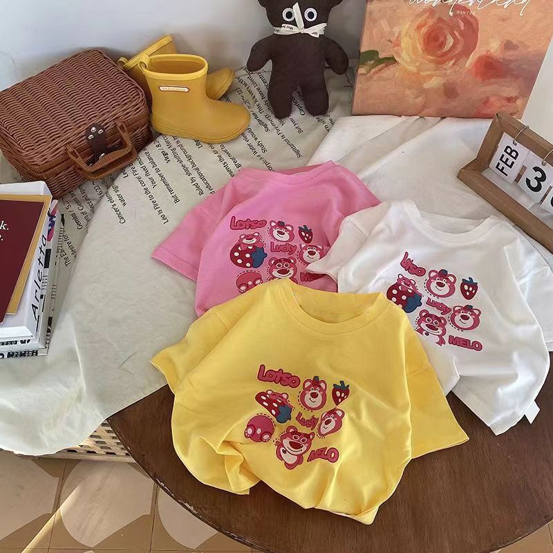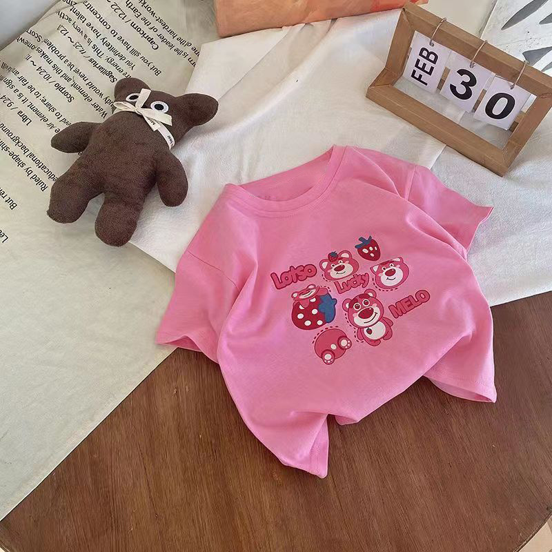 100% 코튼 소녀 라운드 넥 티셔츠 반팔 2024 새로운 여름 인쇄 만화 어린이 반팔 탑 유행 브랜드스토어 가기