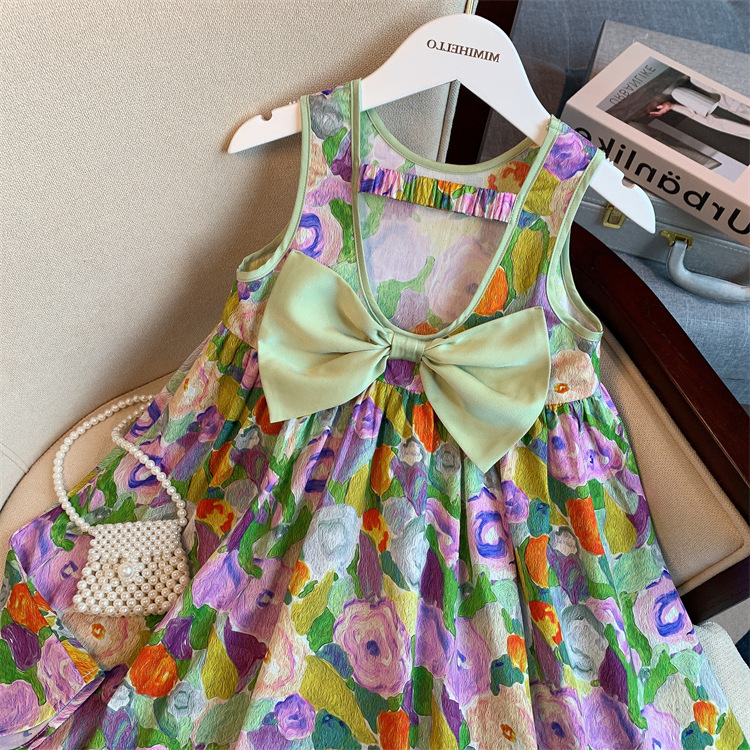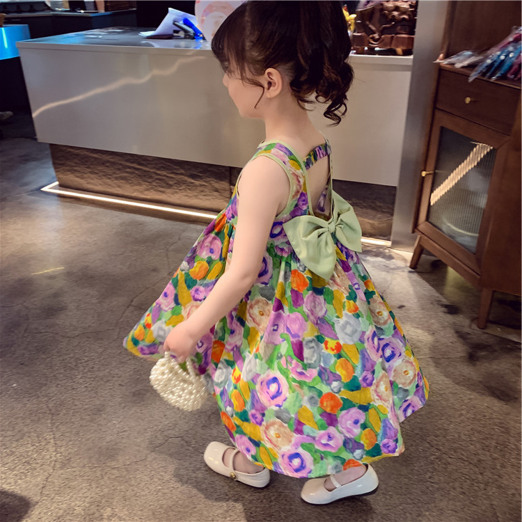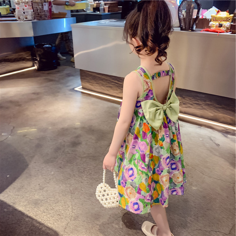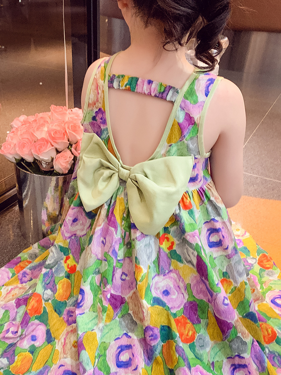 여아 등이없는 원피스 여름 어린이 꽃 스커트 달콤한 보우 스커트 어린이 스커트 3-8 세 아동복 헤어스토어 가기