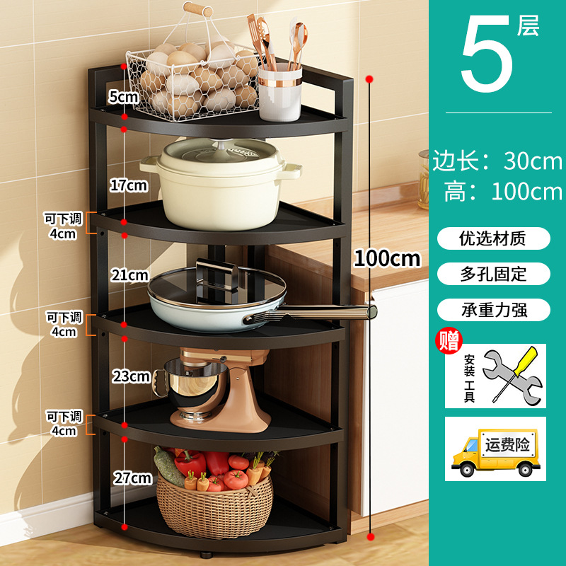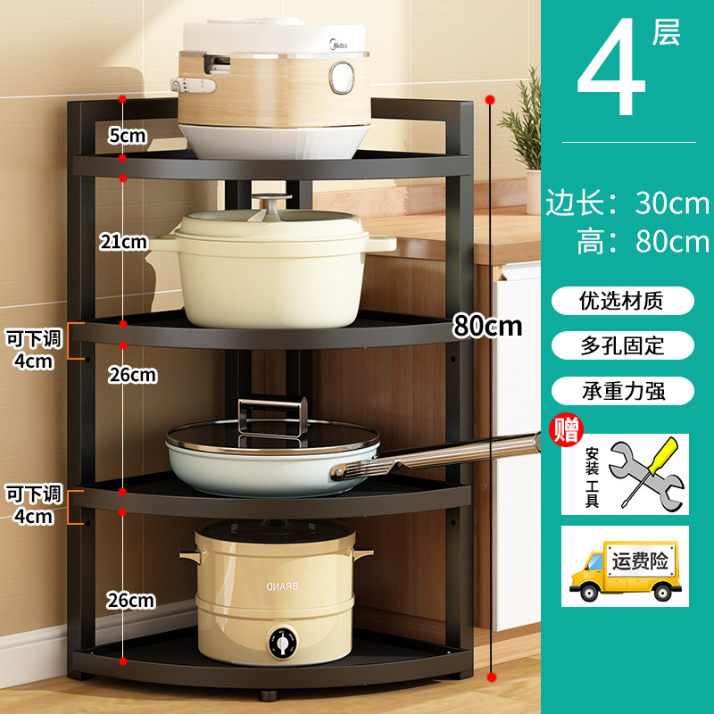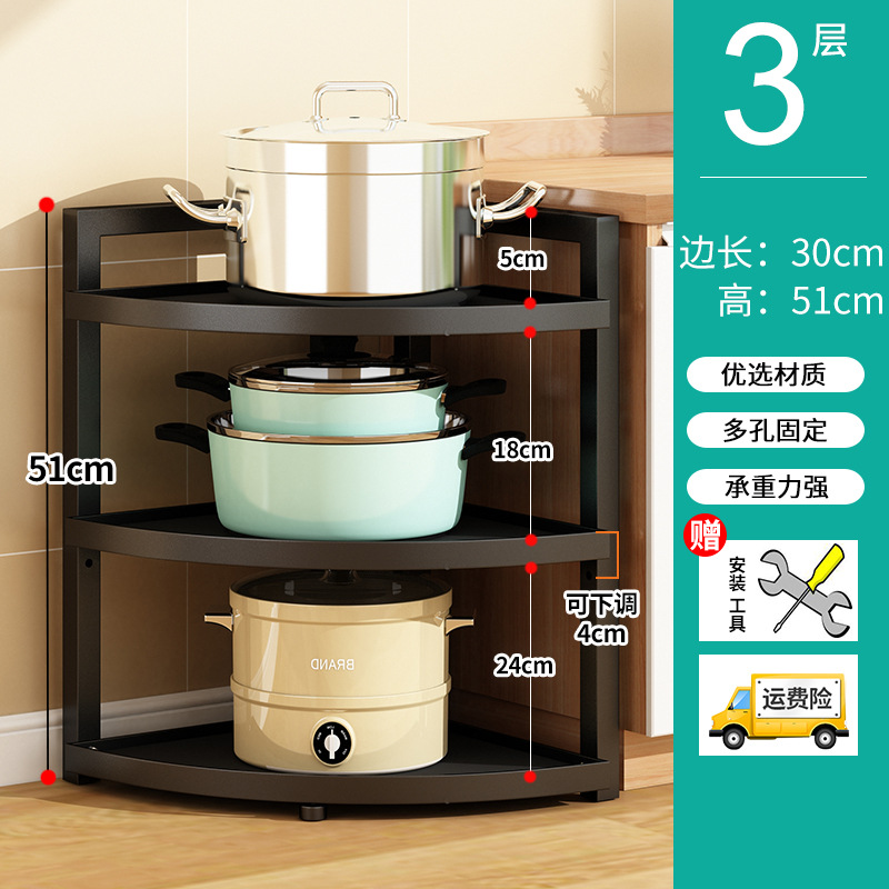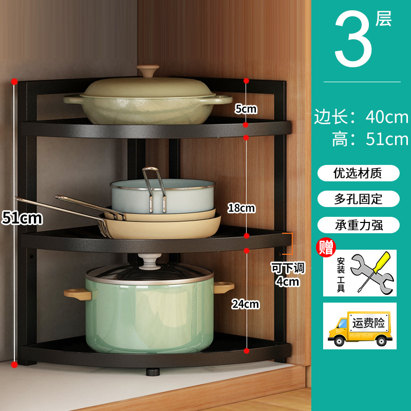 냄비 랙 주방 수납 랙 바닥에 서있는 코너 3 발 수납 랙 가정용 냄비 다층 조절 가능한 층 거리 보관