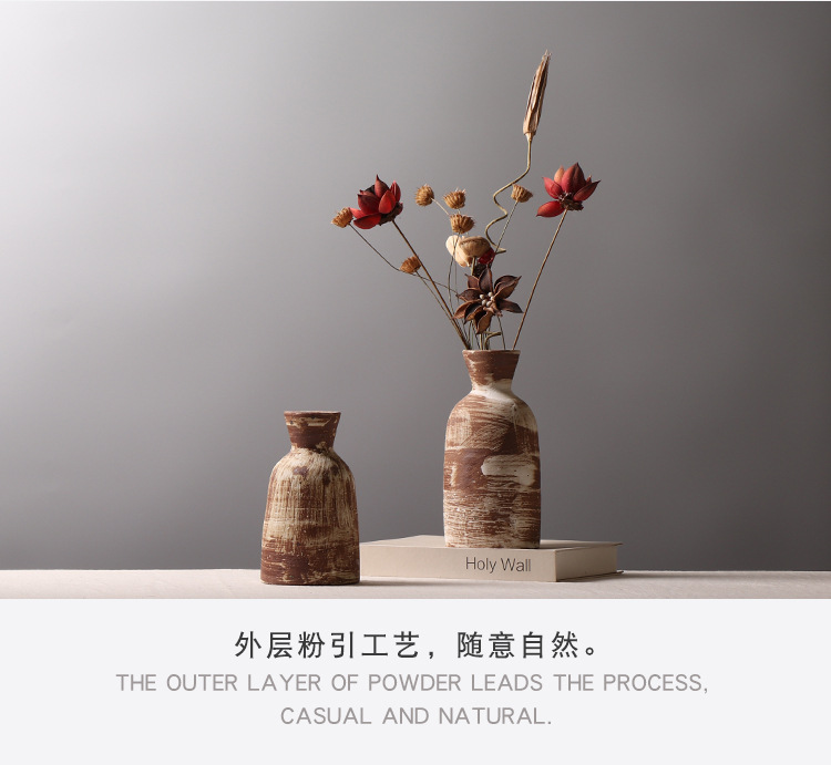 조용한 스타일 작은 냄비 홈스테이 장면 장식 창조적 인 꽃병 거실 티룸 거친 도자기 데스크탑 장식품