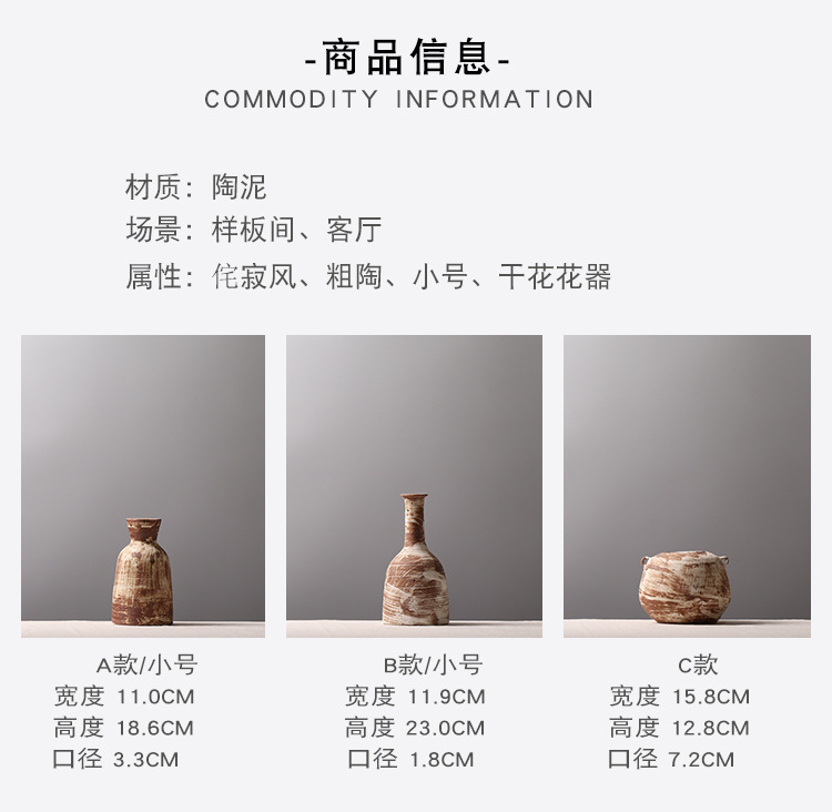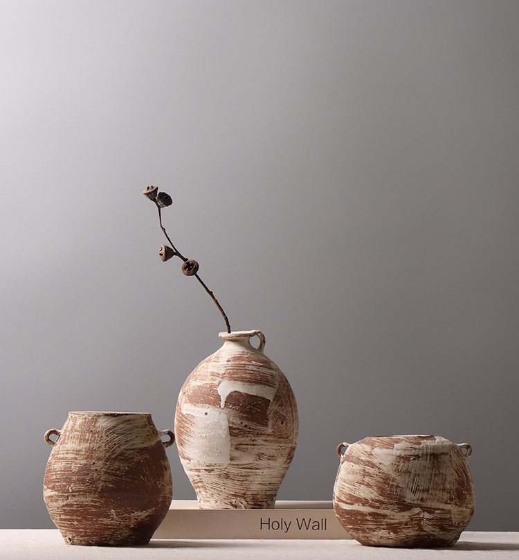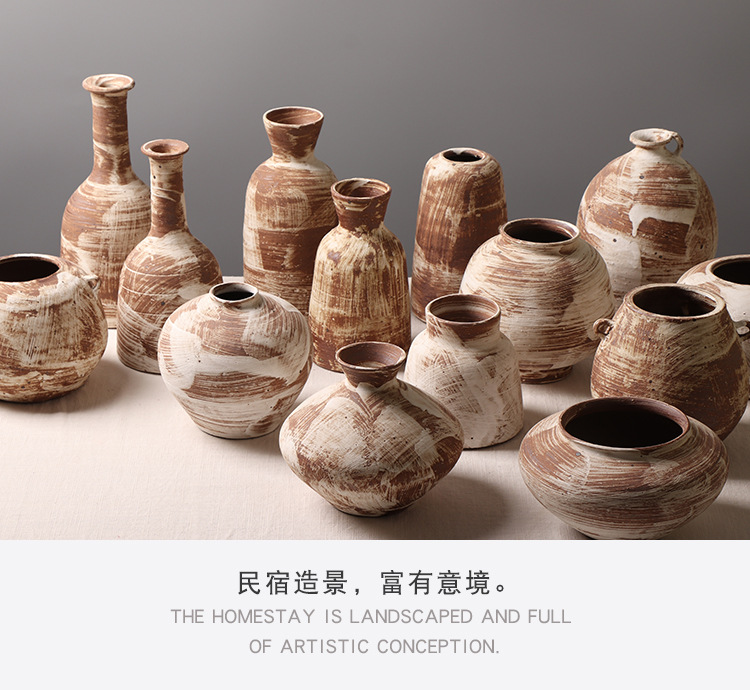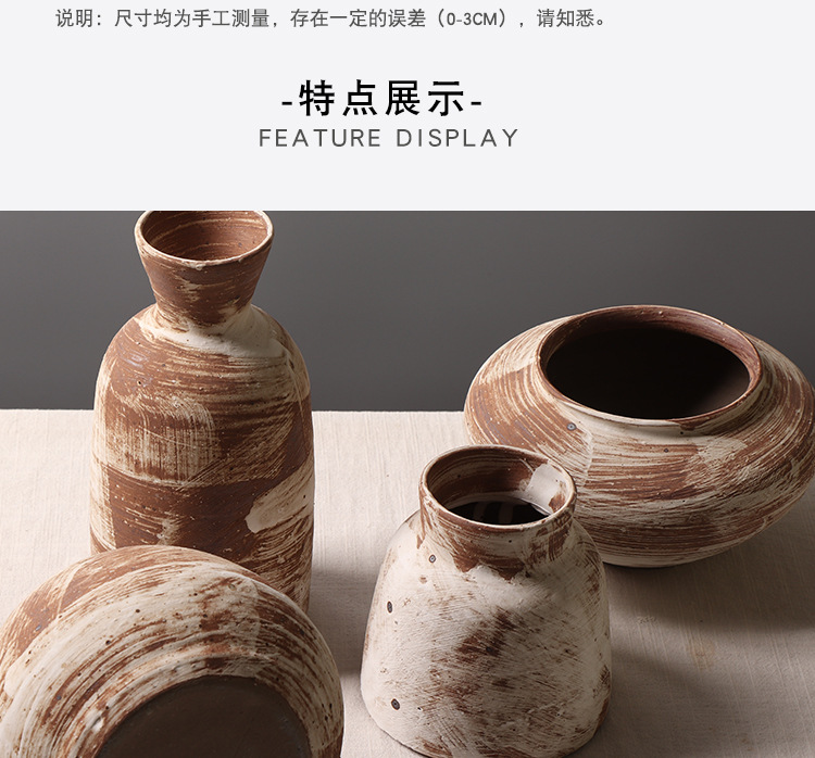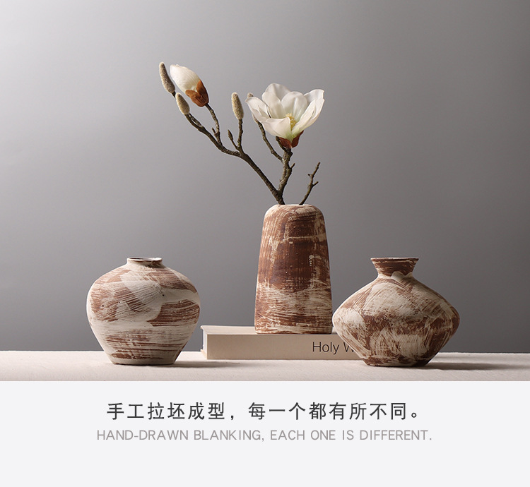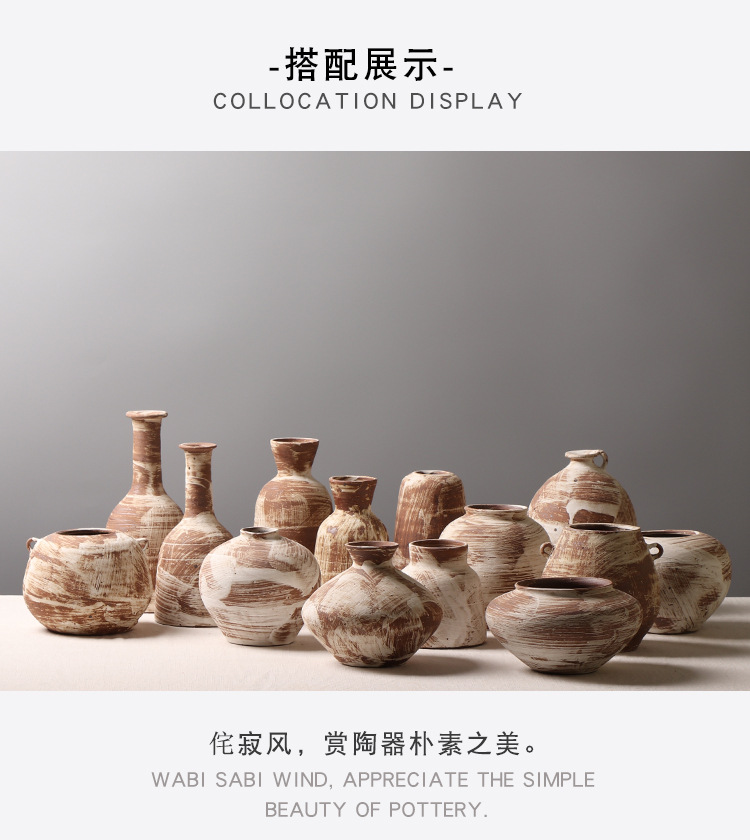 조용한 스타일 작은 냄비 홈스테이 장면 장식 창조적 인 꽃병 거실 티룸 거친 도자기 데스크탑 장식품스토어 가기