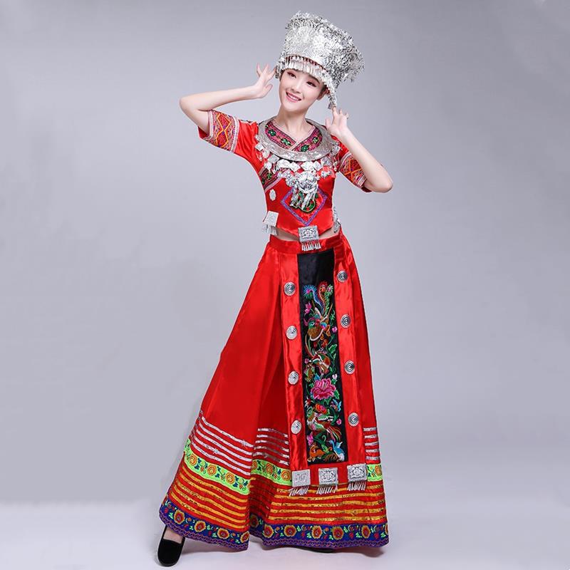새로운 Miao 의류 여성 Miao 신장 소녀 Miao 가족 원피스 업 자수 무대 의상 솔로 경쟁 여행 사진