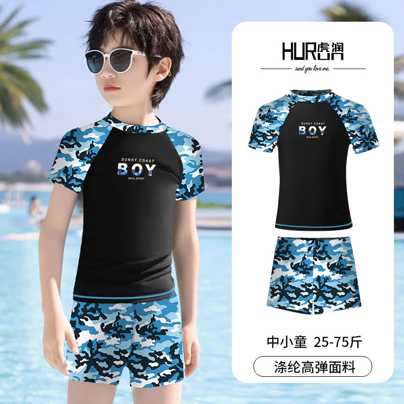 Hu Run 어린이 수영복 소년 중소 어린이 2023 새로운 소년 분할 수영복 속건 온천 수영 트렁크 세트스토어 가기
