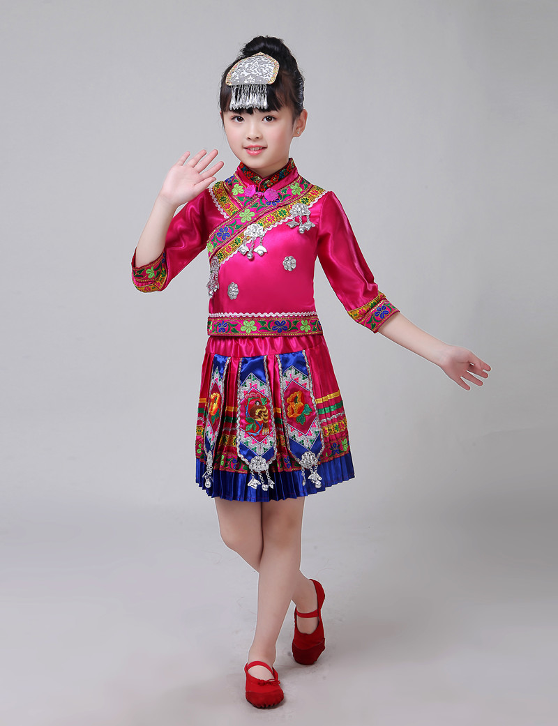 소수 민족 성능 의상 어린이 여성 젤라오 Xive 아창 푸미 누 데 앙 세트스토어 가기