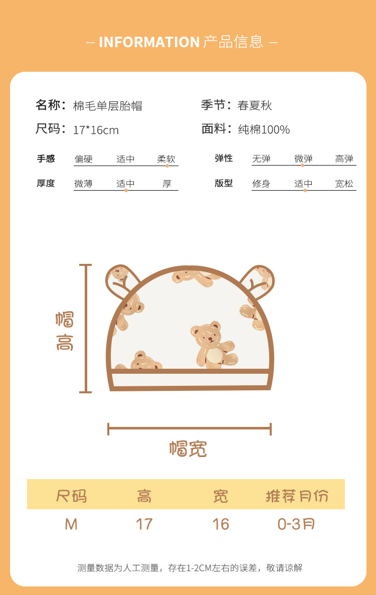 Y2302 아기 모자 신생아 면화 태아 모자 아기 뼈없는 만화 태아 모자 아기 0-3 개월 아기 모자스토어 가기
