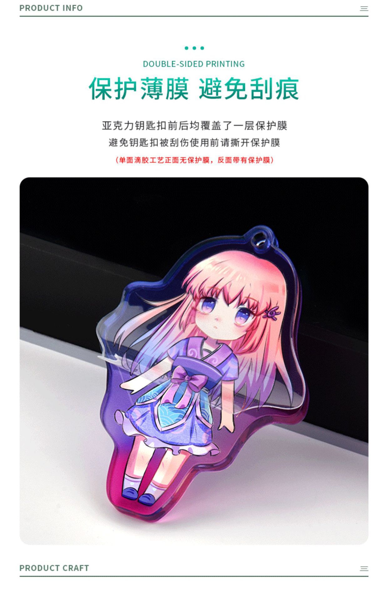 투명 더블 레이어 아크릴 펜던트 사용자 정의 만화 애니메이션 접착제 키 체인 레이저 아크릴 키 체인 사용자 정의스토어 가기