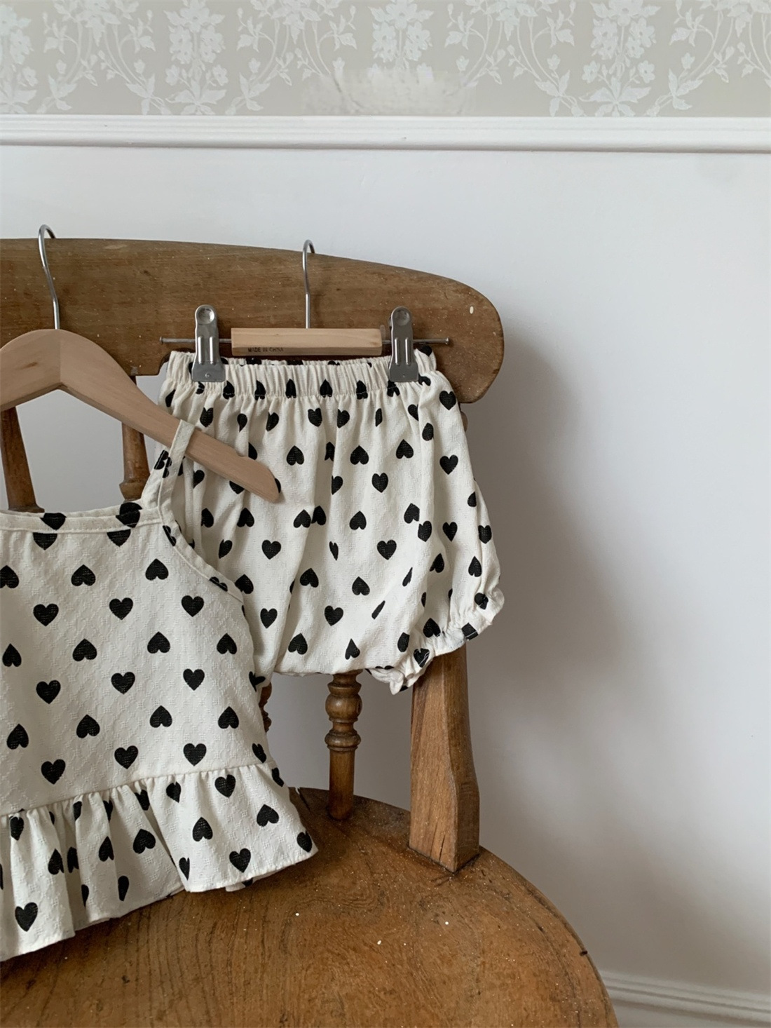 한국 스타일 순면 소프트 사랑 필리핀 사이드 슬링 대형 Pp 반바지 세트 Instagram 스타일 키즈 아기 여름 투피스 유행 세트
