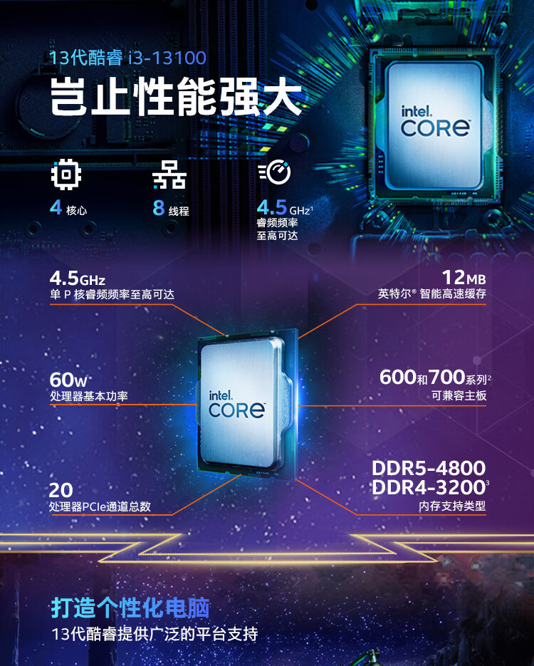 PC 인텔 13 세대 코어 i3-13100 프로세서 CPU 박스/이산