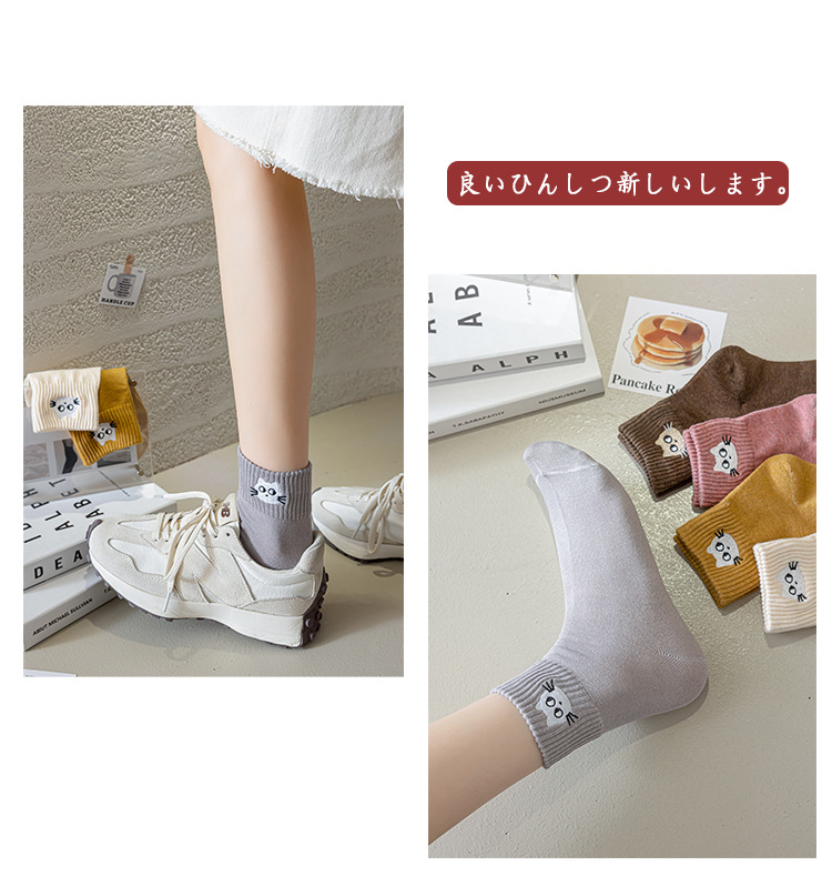 중목 양말 여성용 봄 가을 단색 면 양말 귀여운 고양이 자수 롱 양말 여성용 양말 도매스토어 가기