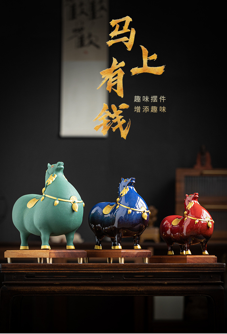당나라 장식 행운의 세라믹 말 새로운 중국 스타일 거실 와인 캐비닛 장식 사무실 입구 데스크탑 공예 장식스토어 가기