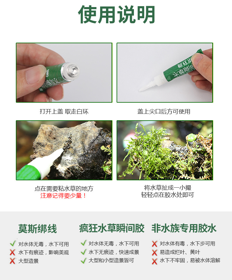 미친 물 잔디 어항 조경 물 잔디 접착제 로커리 돌 침몰 산호 수족관 조경 특수 접착제 도매