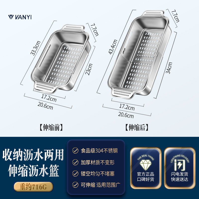 • 304 텔레스코픽 배수 바구니 (스몰 사이즈)