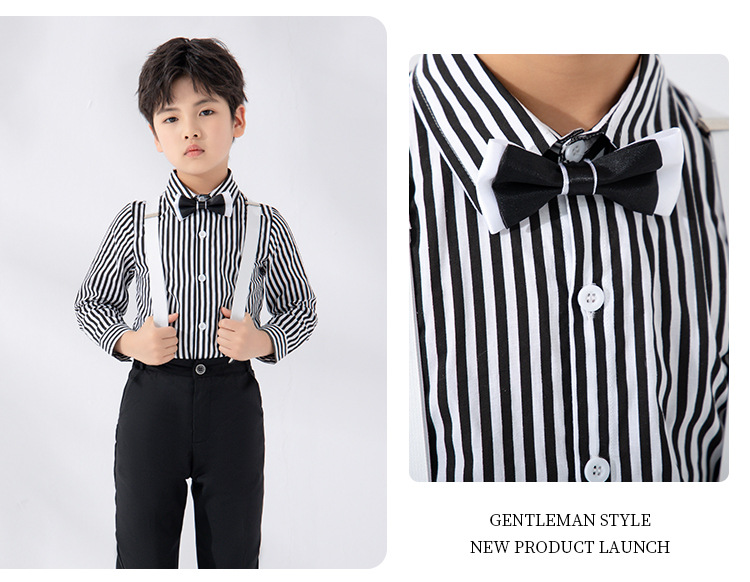 • 검은 바지 + 줄무늬 셔츠 4 종 세트 (검은 나비 넥타이 포함)