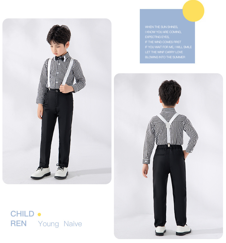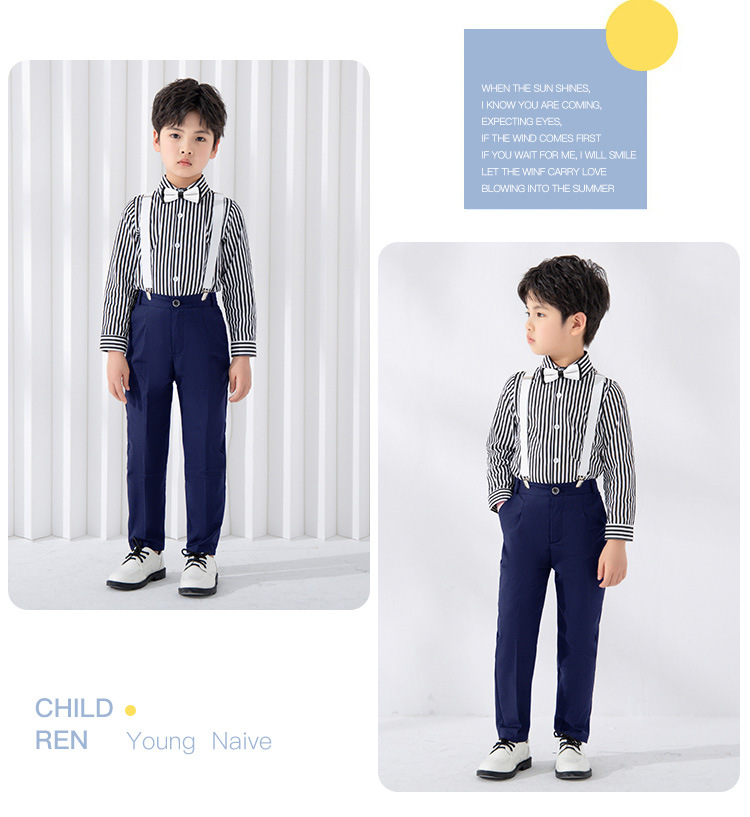 어린이 세트 새로운 스트라이프 셔츠 멜빵 바지 세트 꽃 소녀 원피스 한국 스타일 소년 공연 사진 패션쇼 세트스토어 가기