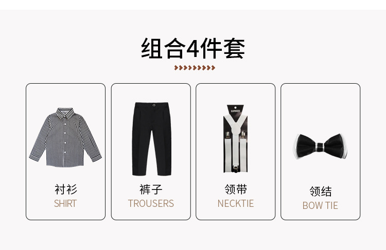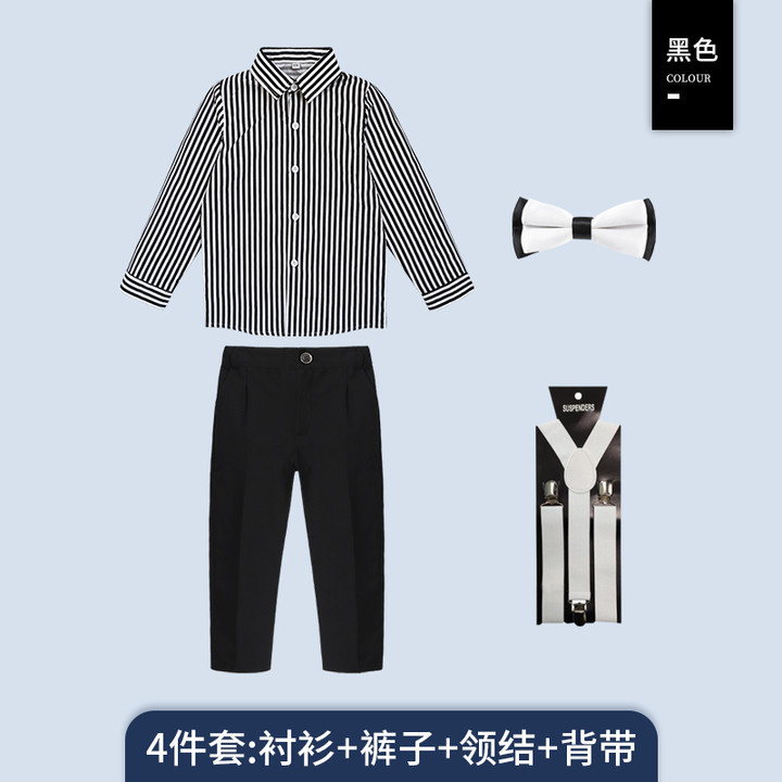 • 검은 색 바지 + 줄무늬 셔츠 4 종 세트 (흰색 나비 넥타이 포함)