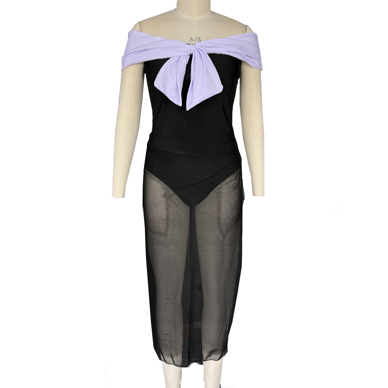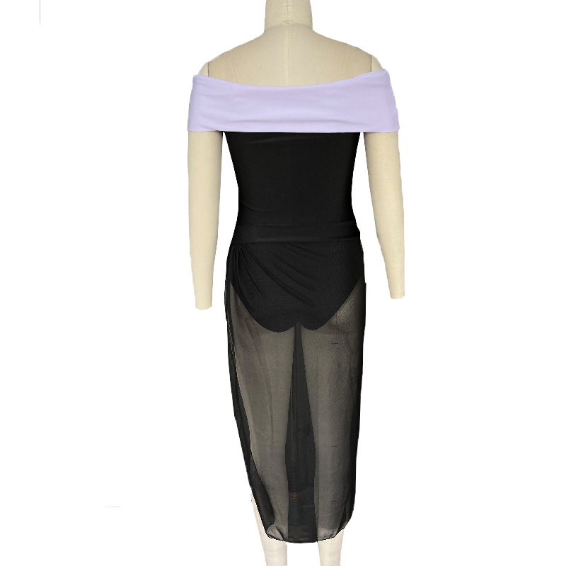 2023 유럽과 미국 패션 끈이 없는 섹시한 끈이 없는 단색 자외선 차단제 비치 원피스 원피스 투피스 여성용 수영복