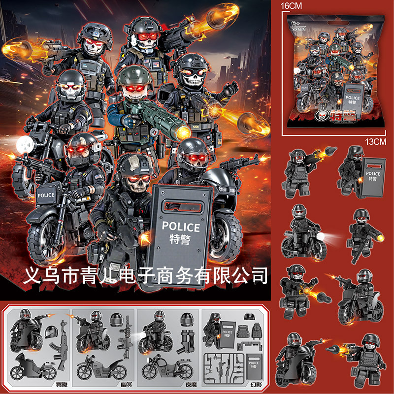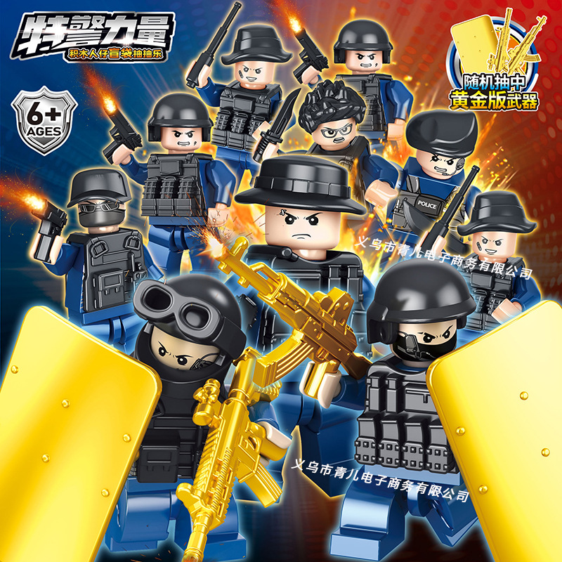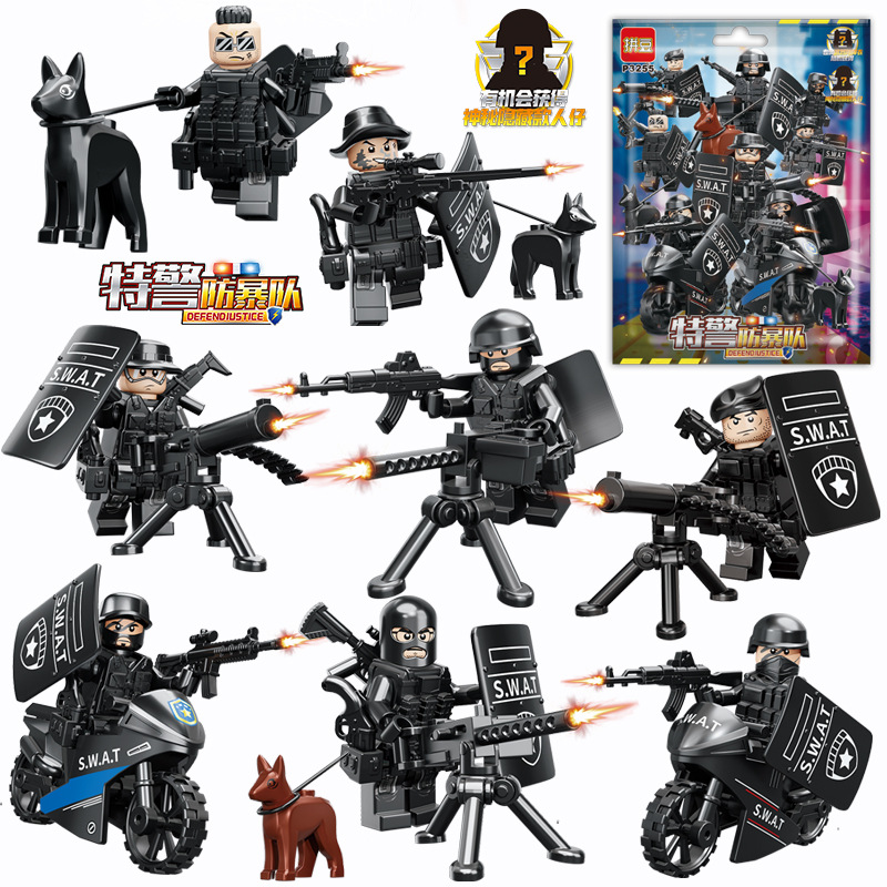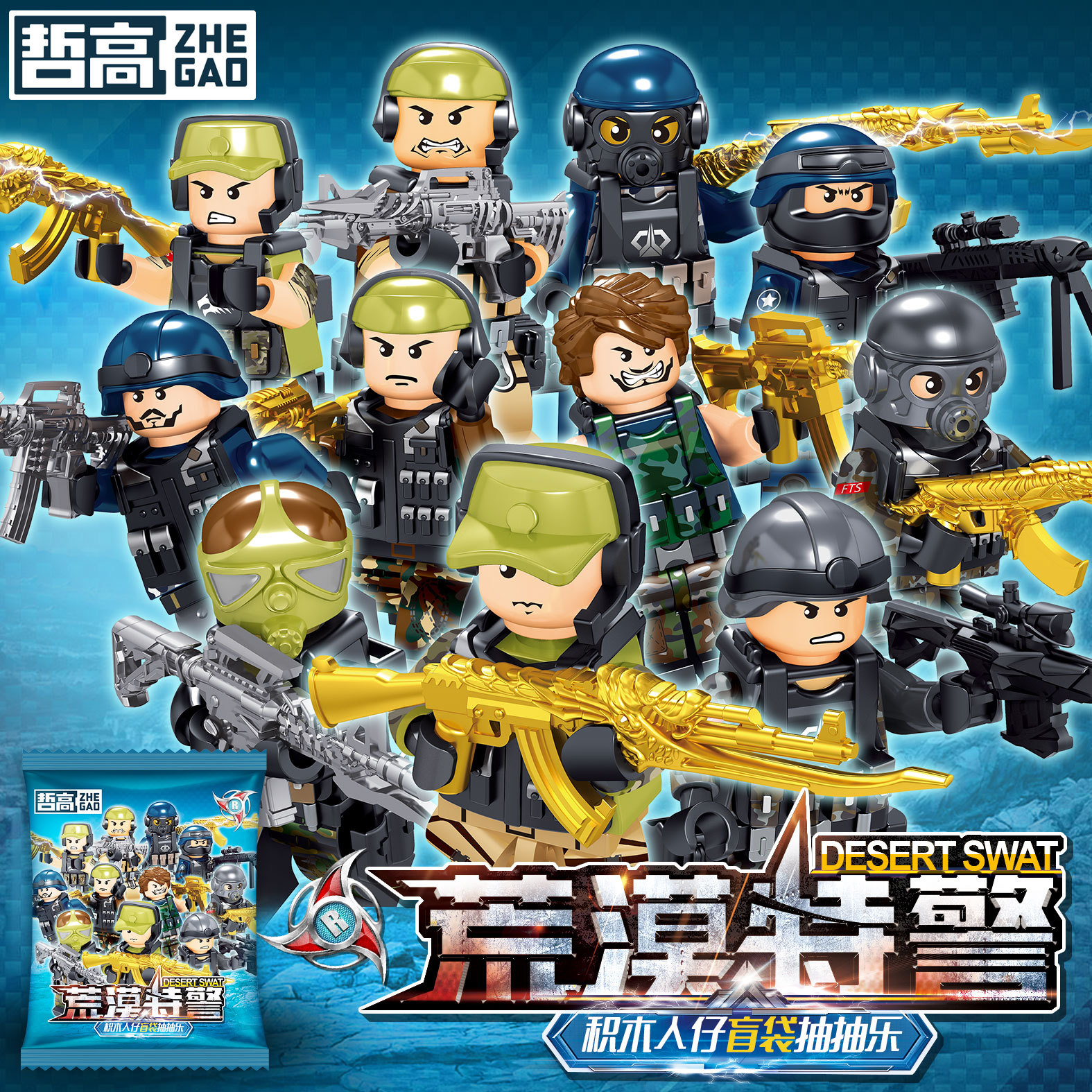 특수 경찰 남성 빌딩 블록 블라인드 가방 장난감 전투기 폭행 부대 인형 플라스틱 작은 입자 조립 국경 특수 부대스토어 가기