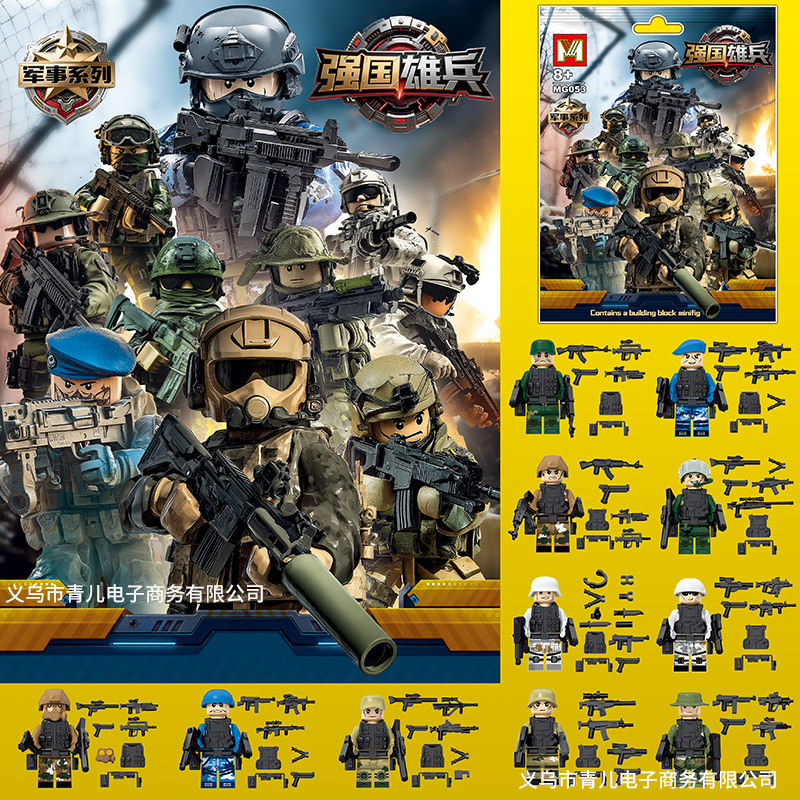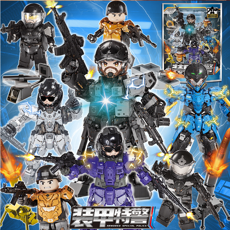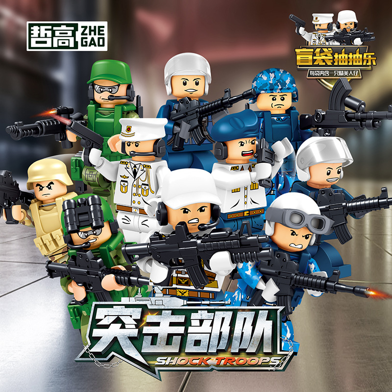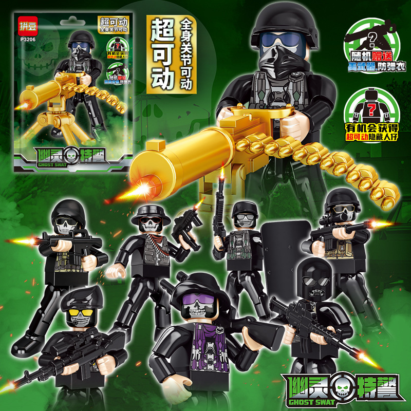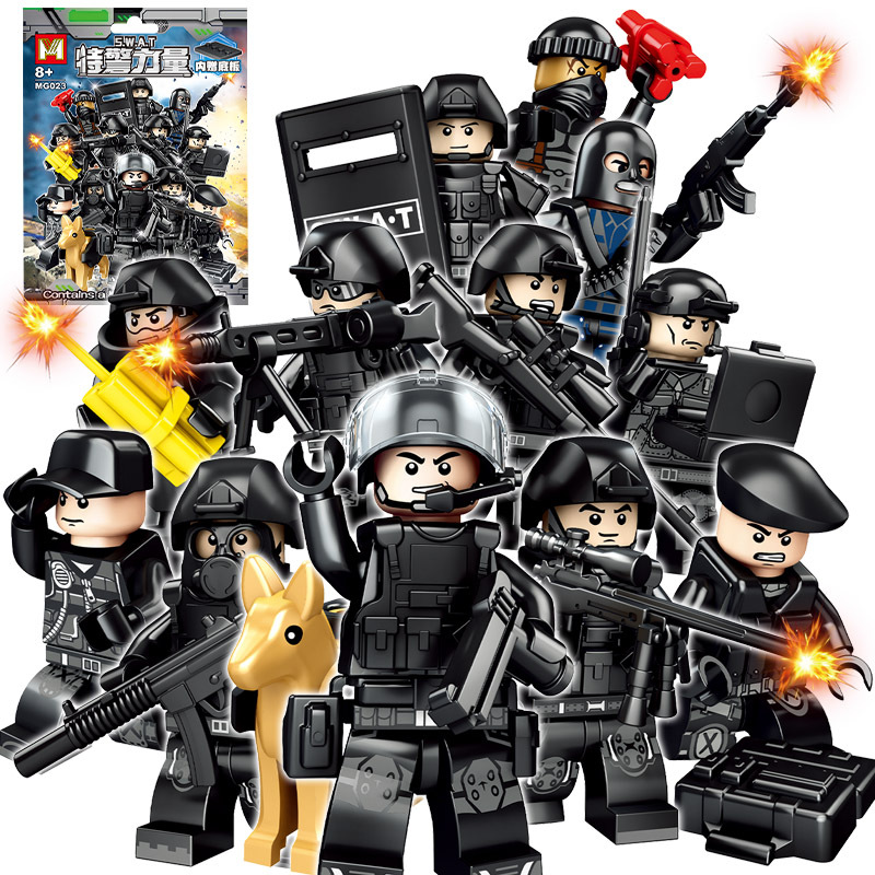 특수 경찰 남성 빌딩 블록 블라인드 가방 장난감 전투기 폭행 부대 인형 플라스틱 작은 입자 조립 국경 특수 부대스토어 가기