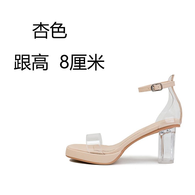 여성을위한 한 단어 버클 투명 하이힐 신발 여름 요정 스타일 여성을위한 새로운 방수 플랫폼 크리스탈 중간 두꺼운 뒤꿈치 샌들스토어 가기