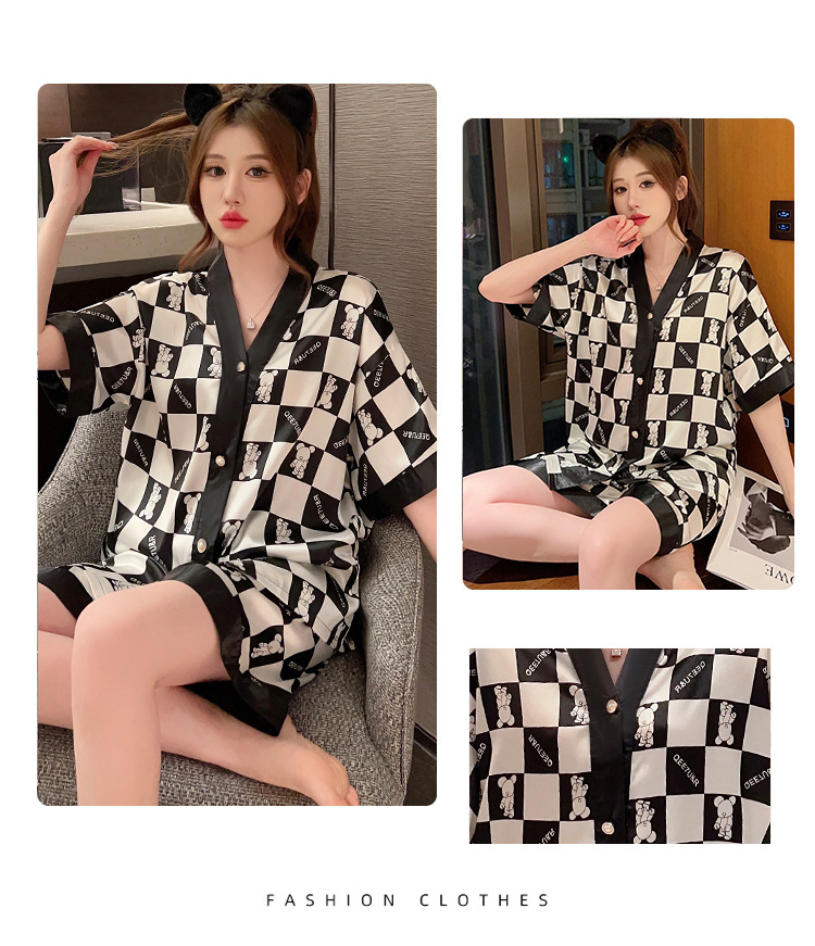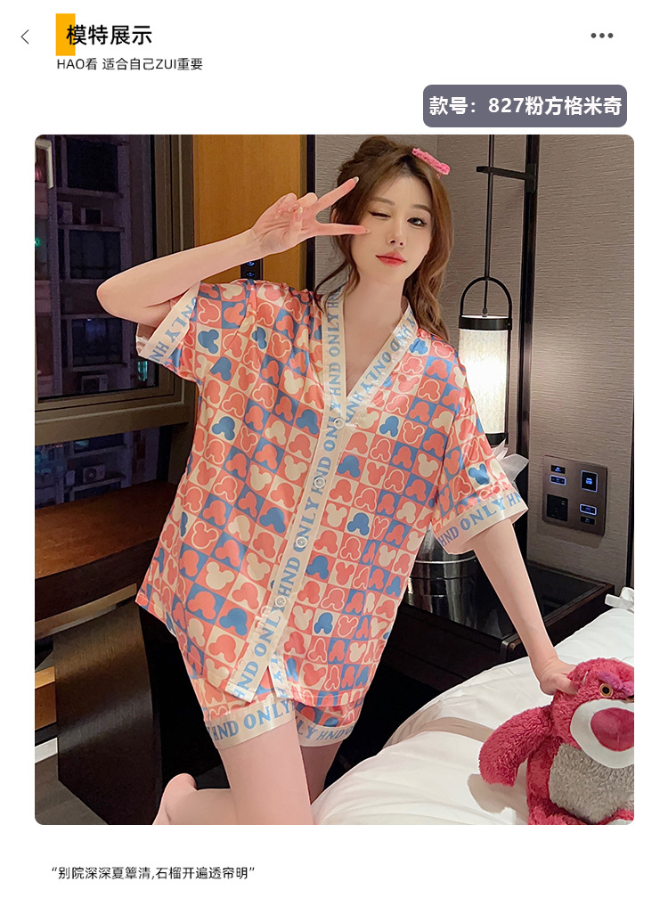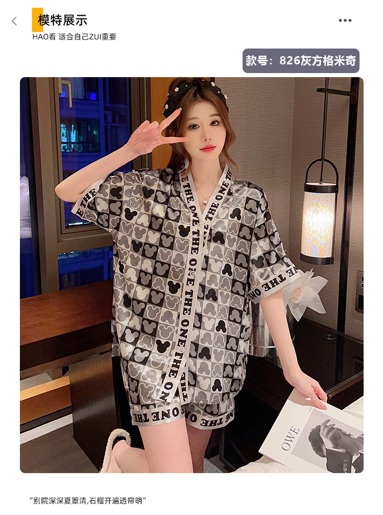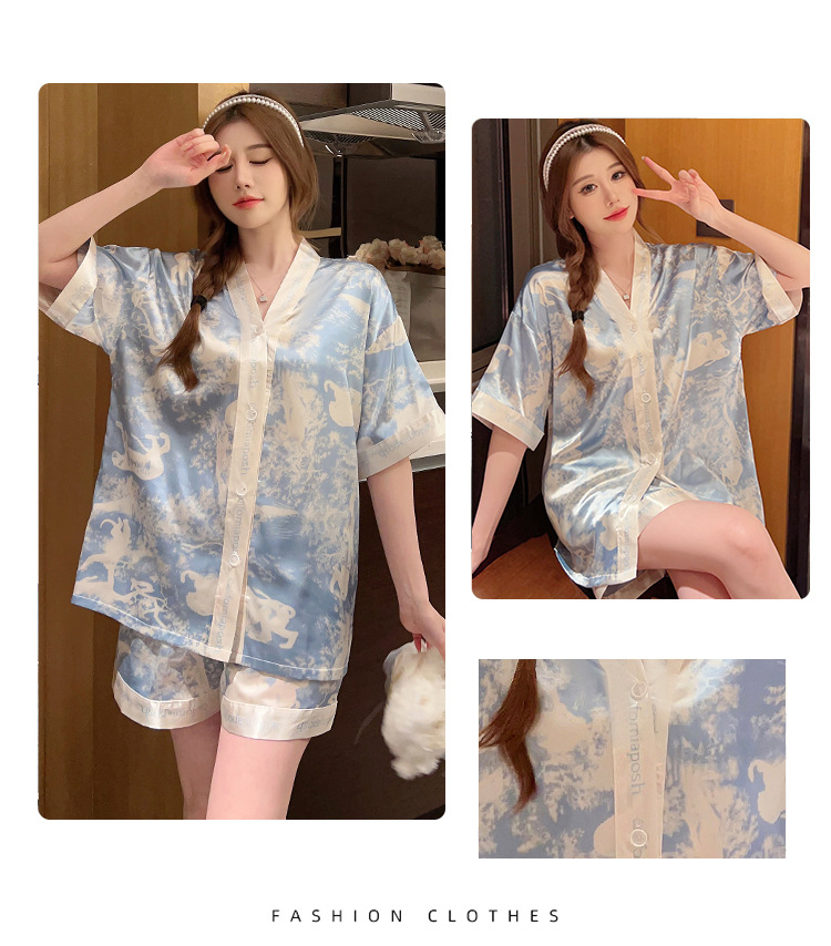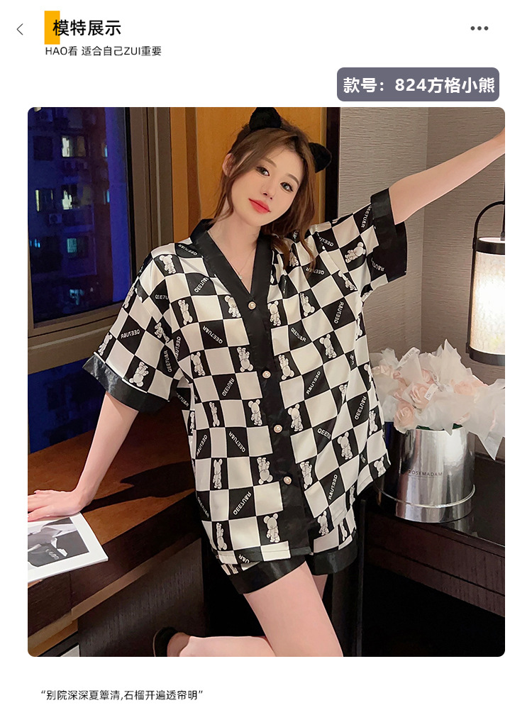 아마존 핫 잠옷 여성용 여름 아이스 실크 반팔 편안한 만화 패션 멋진 투피스 가정복 크로스 보더