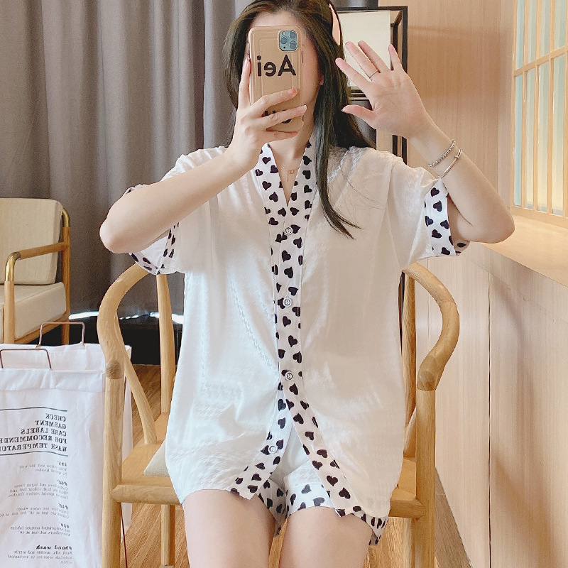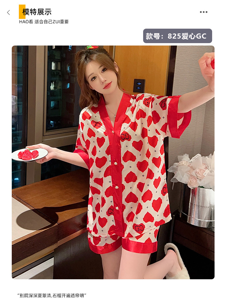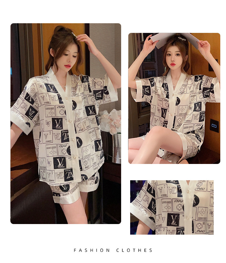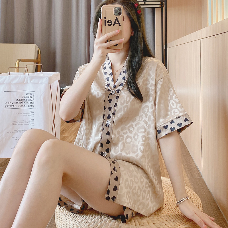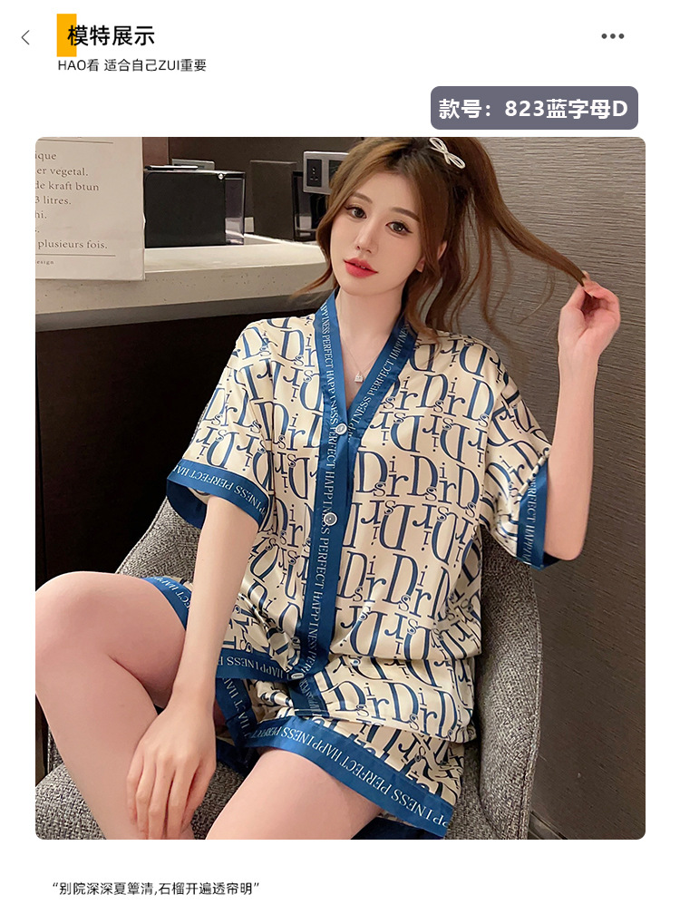 아마존 핫 잠옷 여성용 여름 아이스 실크 반팔 편안한 만화 패션 멋진 투피스 가정복 크로스 보더