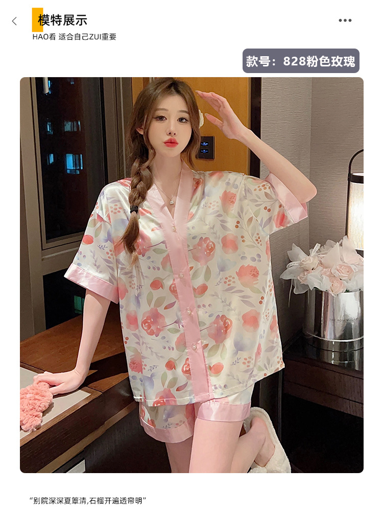 아마존 핫 잠옷 여성용 여름 아이스 실크 반팔 편안한 만화 패션 멋진 투피스 가정복 크로스 보더스토어 가기